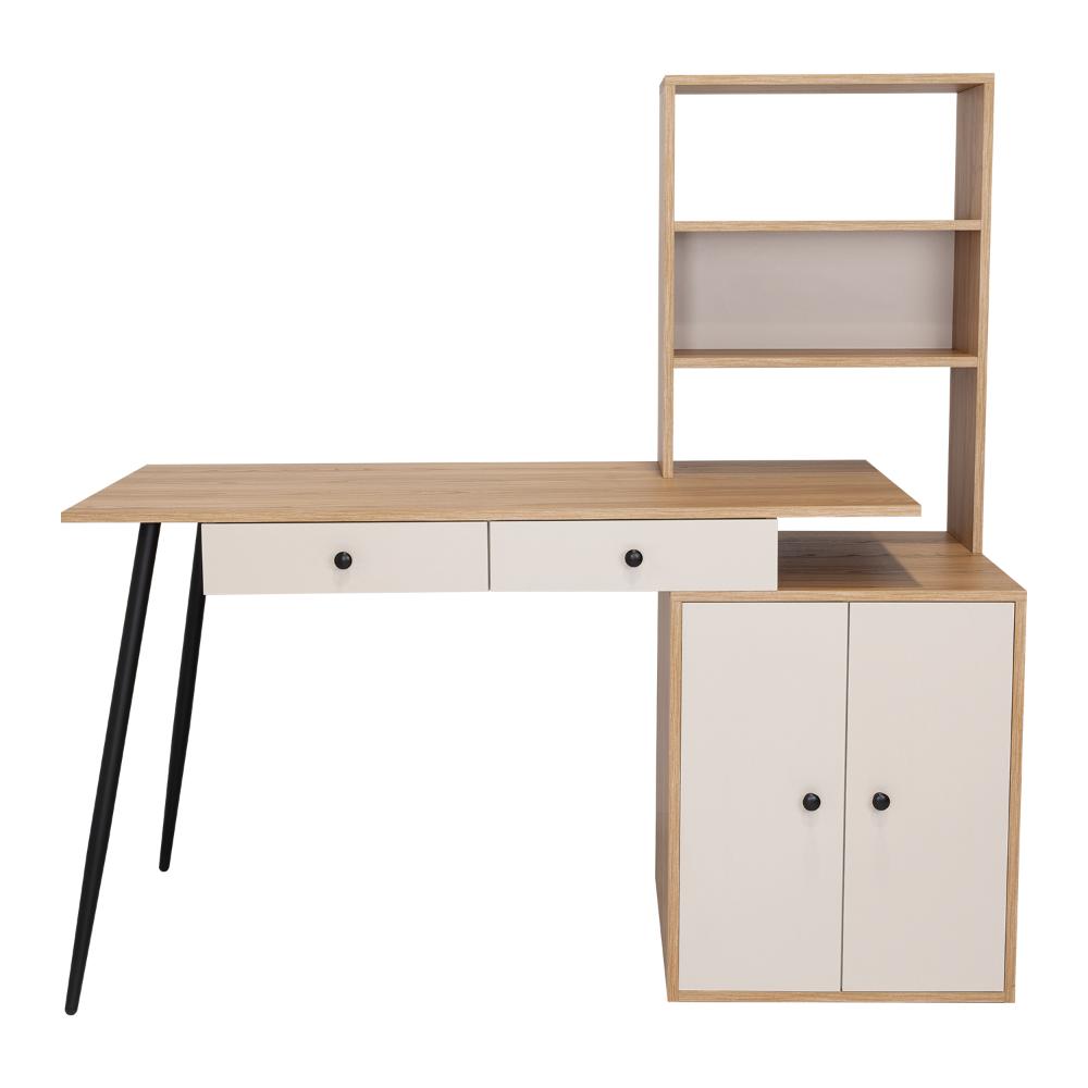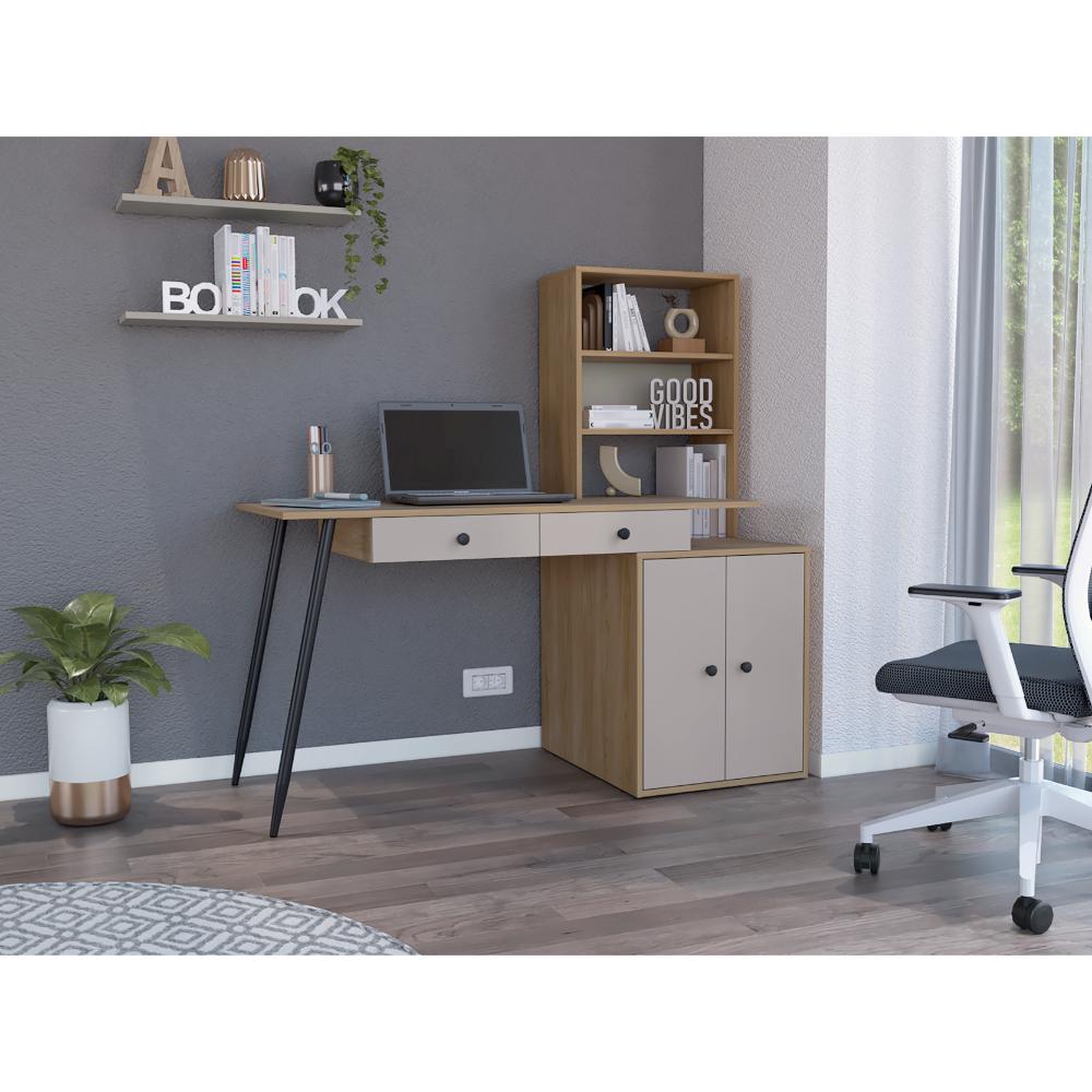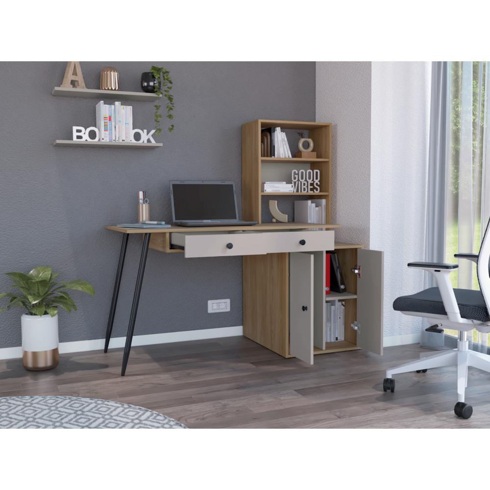 Escritorio Fari, Fresno Capri, con puertas batientes para almacenar libros