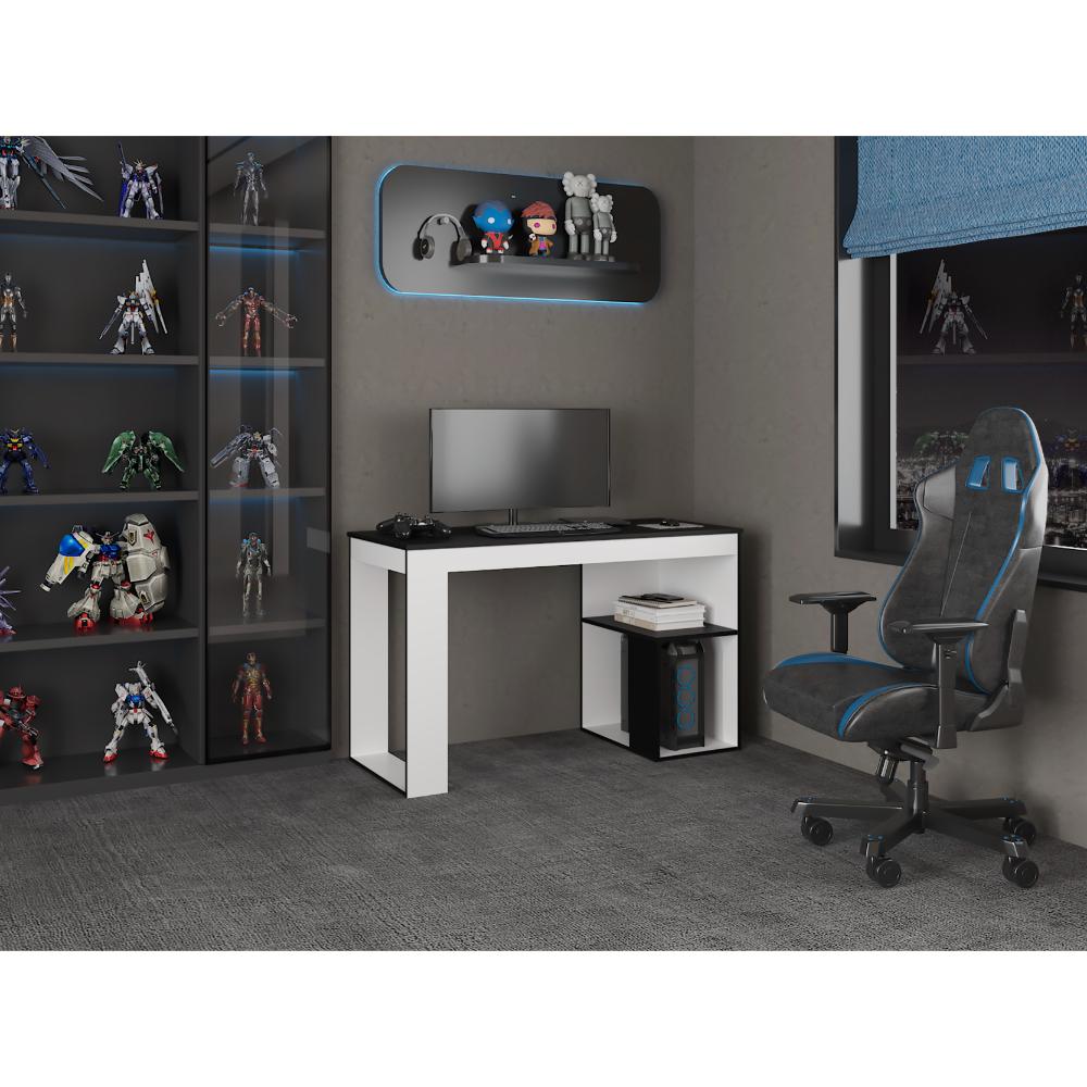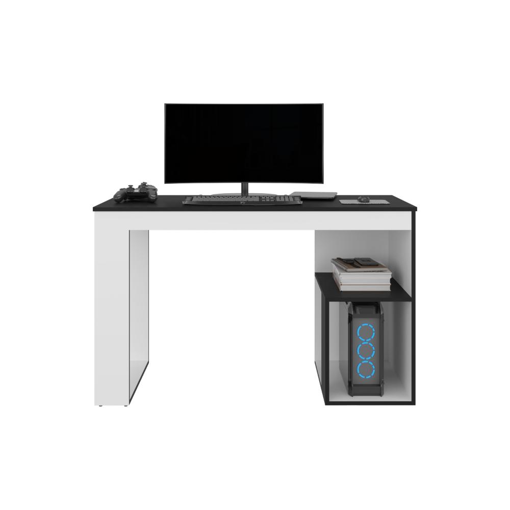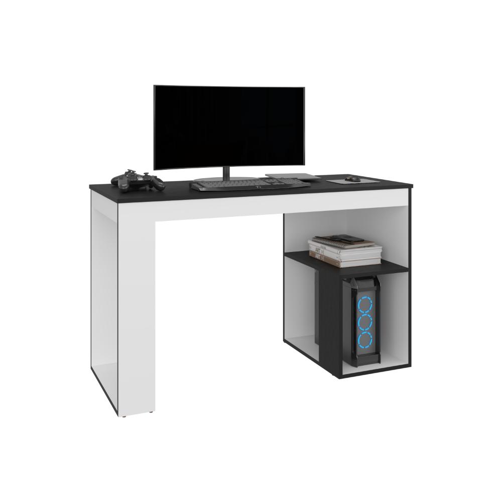 Escritorio Gamer Astana, Blanco Duqueza y Wengue, con dos entrepaños y amplia superficie
