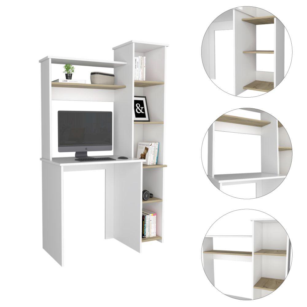 Escritorio Heinrich, Café Claro y Blanco, con múltiples espacios ZF