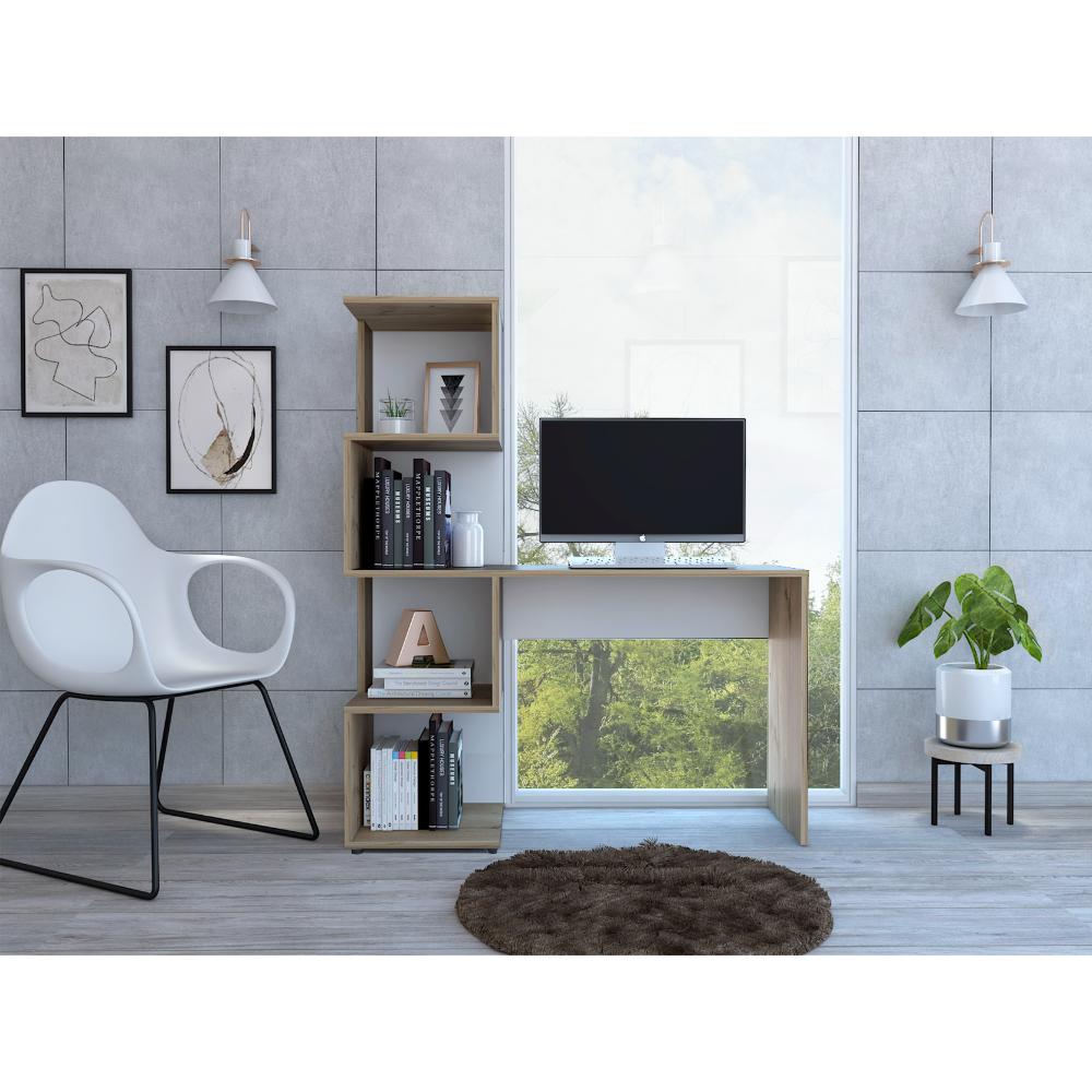 Escritorio Mexico, Café Claro y Blanco, con Tres Entrepaños