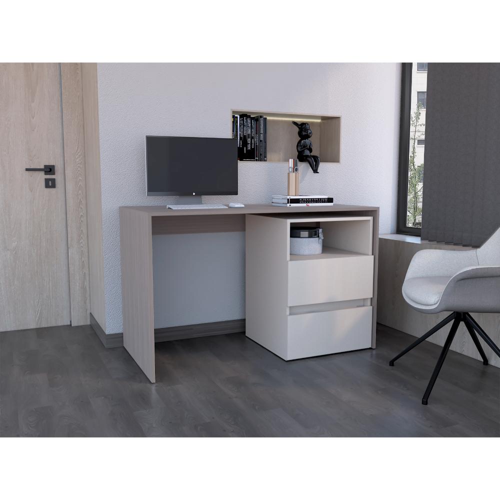 Escritorio , con espacio para objetos decorativos, amplia superficie de trabajo, combinación de colores.