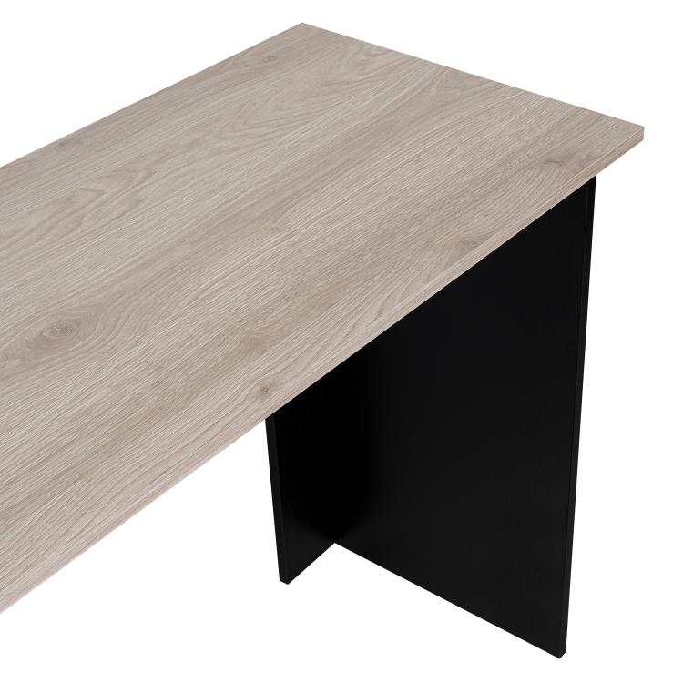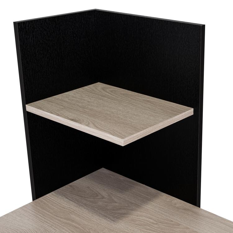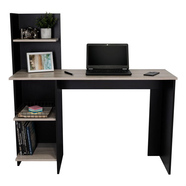 Escritorio, con amplia superficie de trabajo, entrepaños para ubicar libros y/o elementos decorativos, combinación de colores.