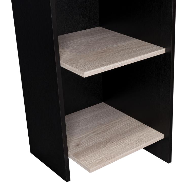 Elaborado en Madera aglomerada MDP, recubierta con láminas melamínicas de excelente calidad, en color Wengue y Humo.