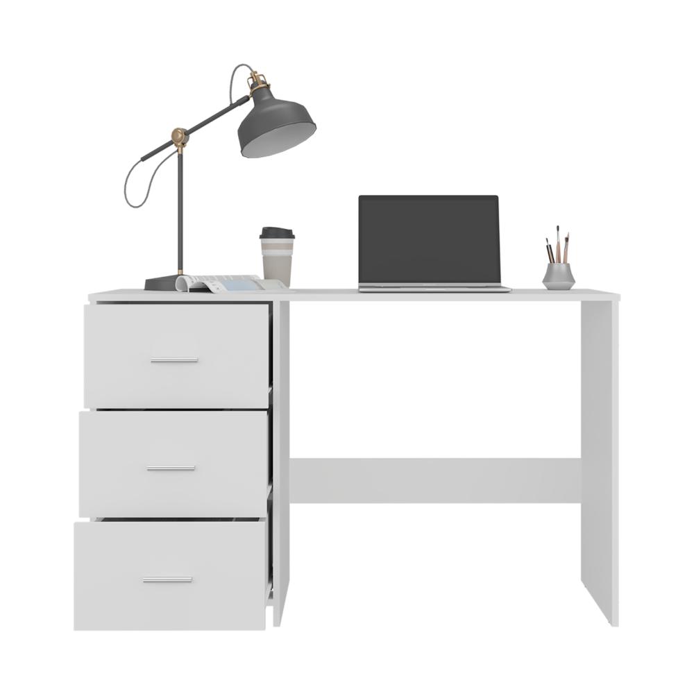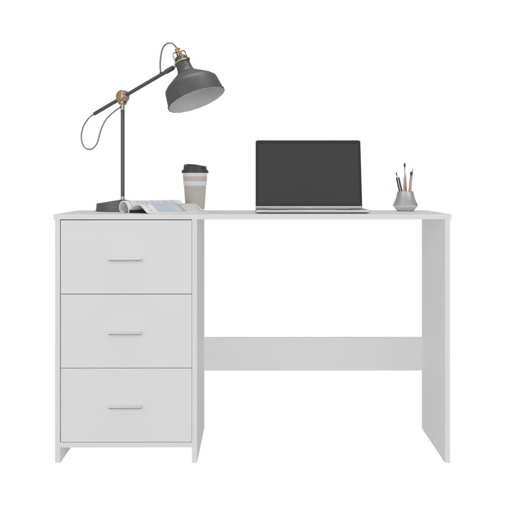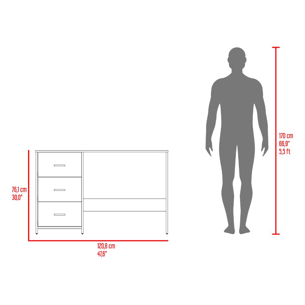 Escritorio Zoelo, Blanco Duqueza, con Tres Cajoneras Manijas Metálicas y Amplio Espacio de Almacenamiento