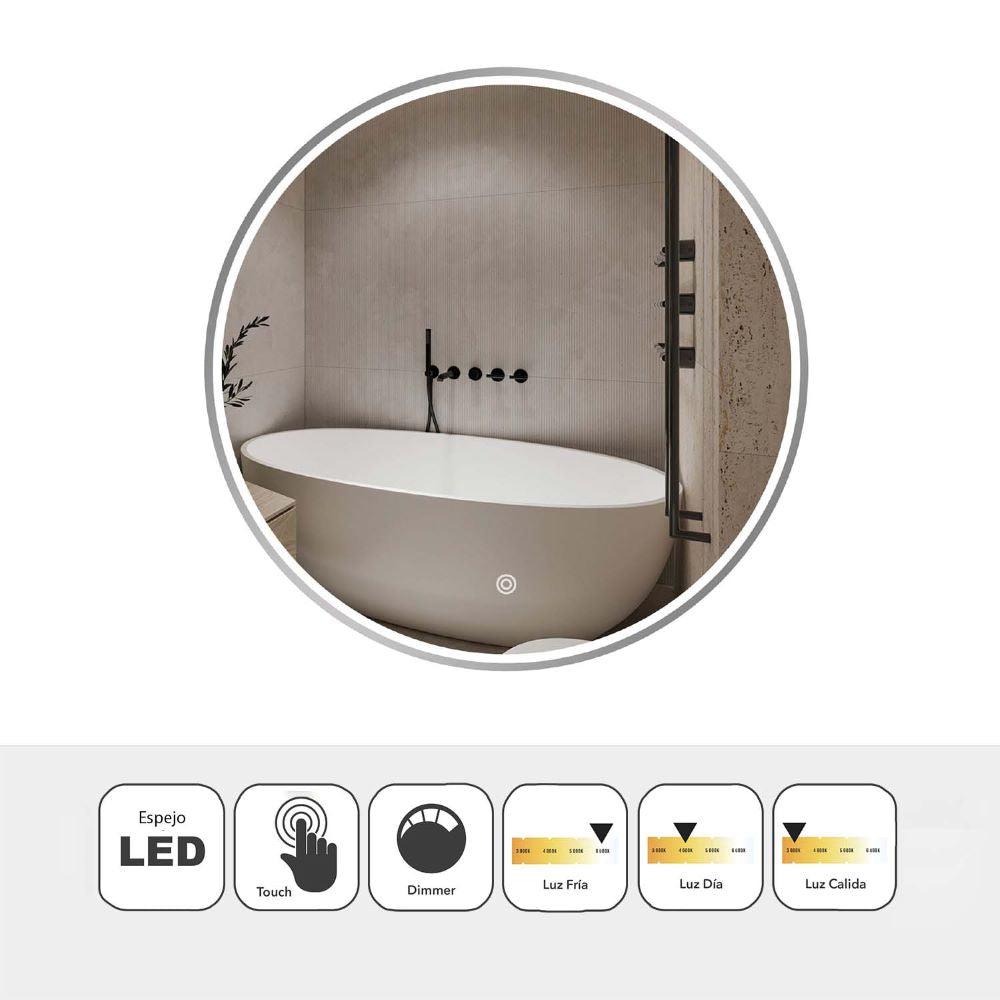 Espejo Azore Cromo, Con Luz Led y Redondo