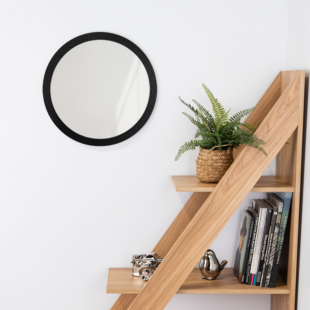Espejo Circular, con marco en madera MDP color negro Cal 15mm y espejo Cal 3mm, con chaflán para facilitar su instalación