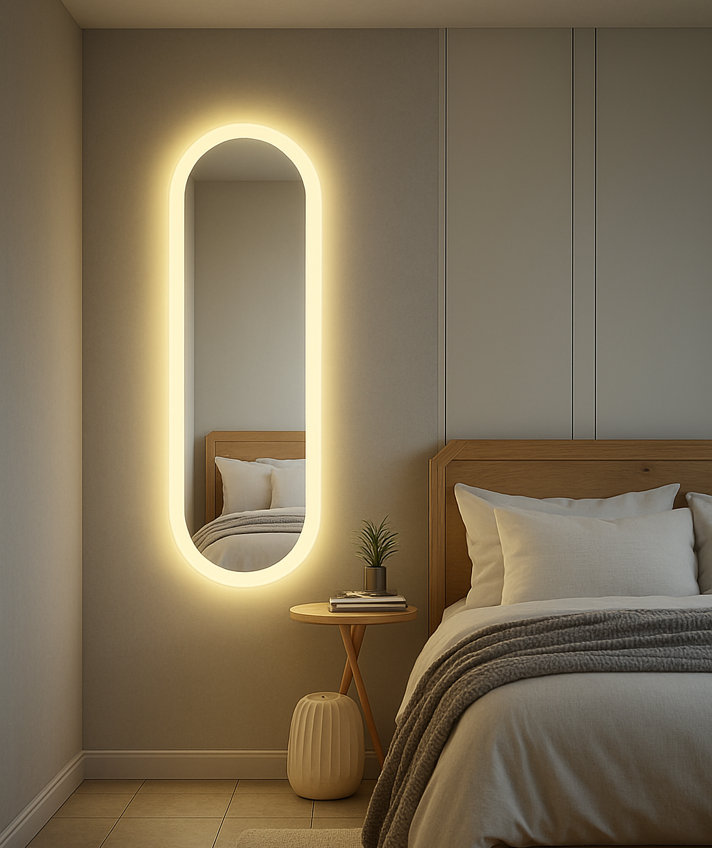 Espejo Curvo Oviedo, Gris, con Luz Led y Botón Touch