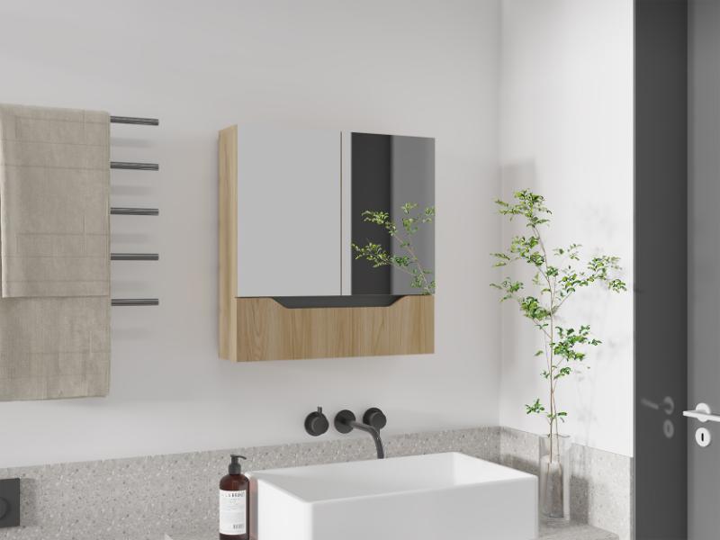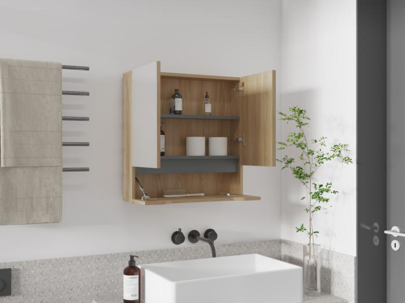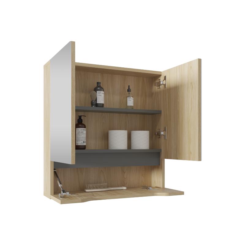 Gabinete de Baño Apolis, Fresno Europeo y Plata Oscuro, con espejo