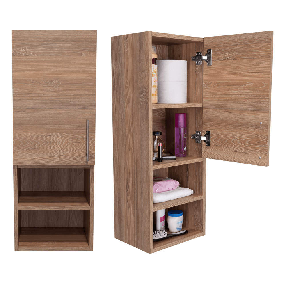Gabinete de Baño , Ahorrador de espacio, 1 puerta batiente, espacio para sanitario de hasta 59cm de ancho, compartimento superior para guardar artículos de uso personal, manijas metálicas, fácil armado e instalación a pared.