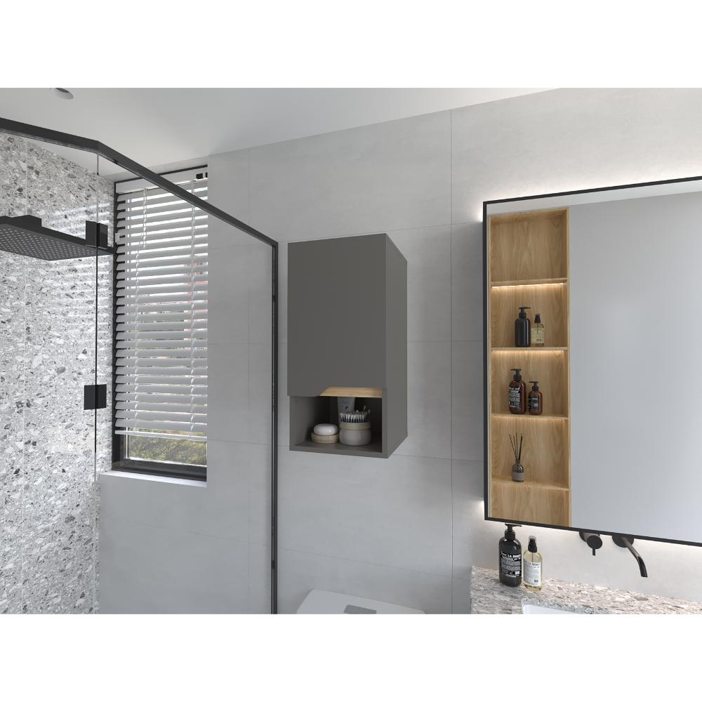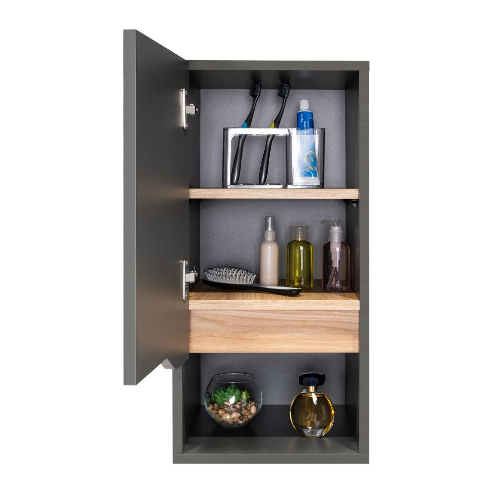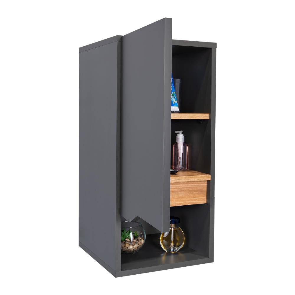 Gabinete de Baño Apolis, Plata Oscuro y Fresno, con Espacio Para Guardar Objetos de Aseo Personal