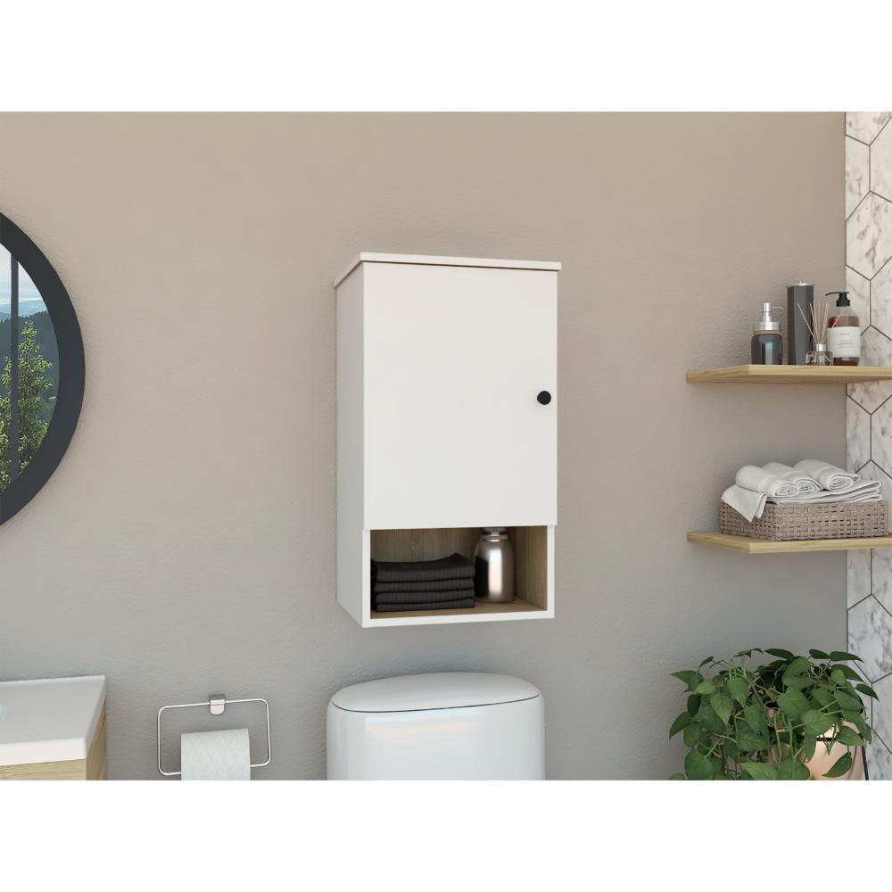Gabinete de baño Bath, Blanco y Café Claro, con puerta batiente X2