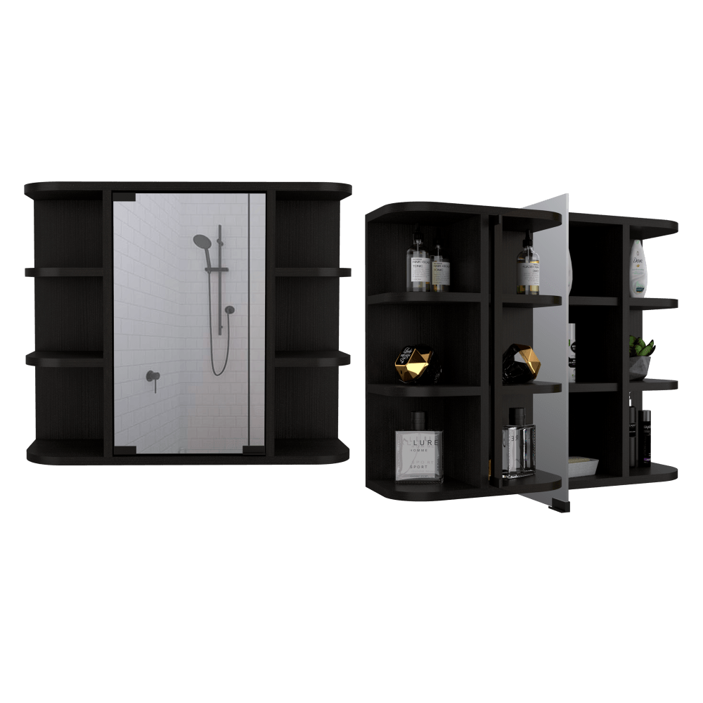 Gabinete de Baño Delio, Wengue, con Una Puerta de Espejo Abatible y Seis Entrepaños X2