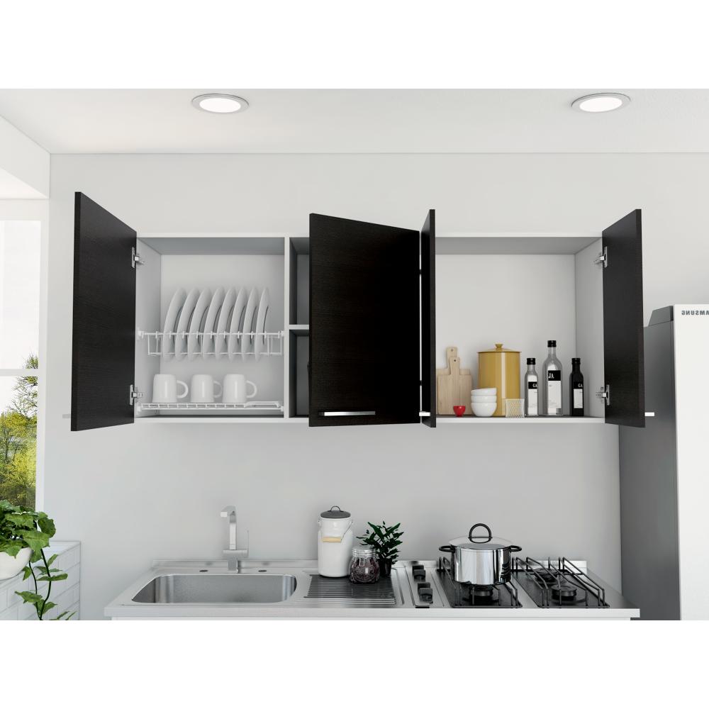 Gabinete Superior Ursa, Blanco y Wengue, con Múltiples Entrepaños Para Almacenamiento