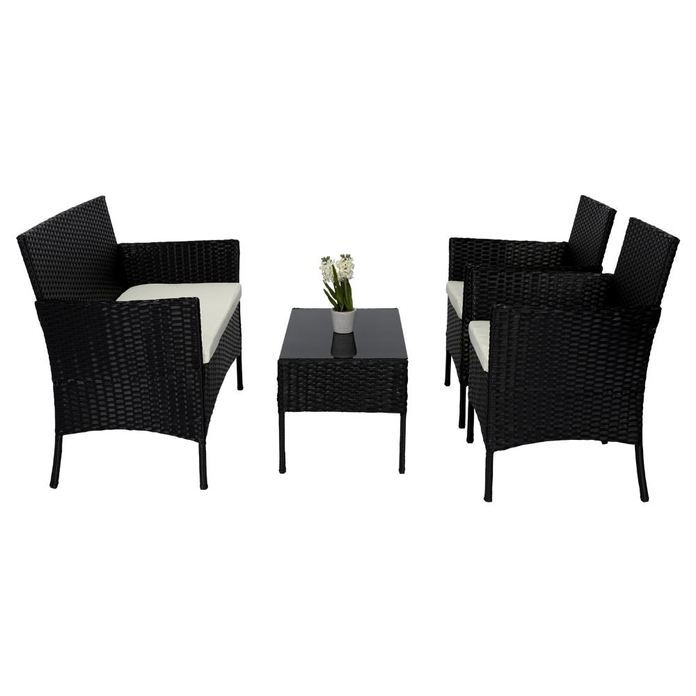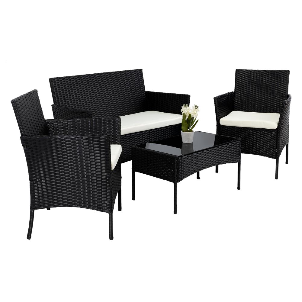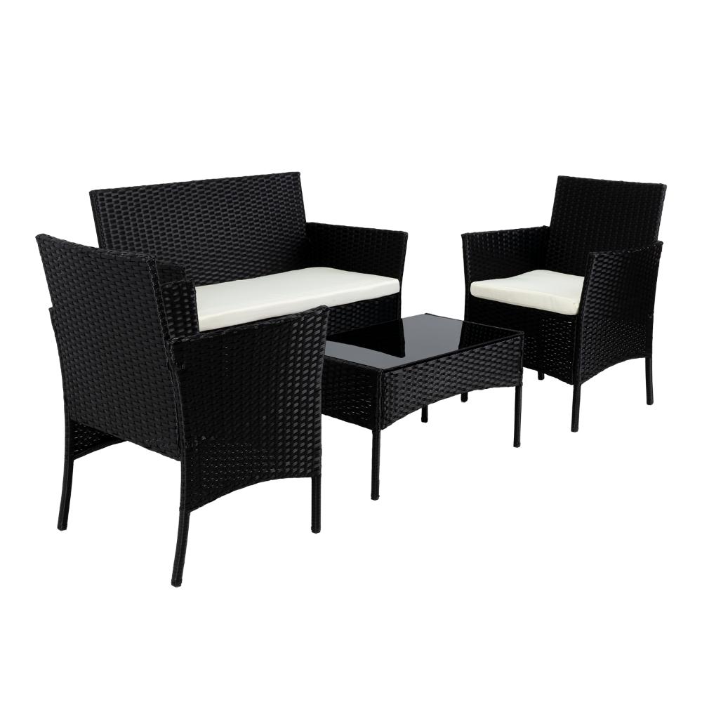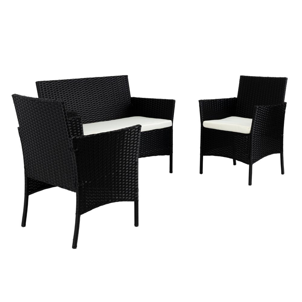 Juego de Sala Exterior Zafiro, Negro y Blanco, con Dos Sillas de Una Plaza y Una Silla de Dos Plazas