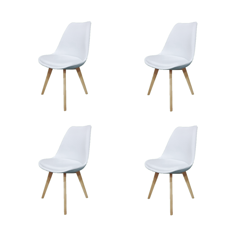 Kit de Cuatro Sillas Romero, Blanco y Café claro, cómodo asiento y patas en madera