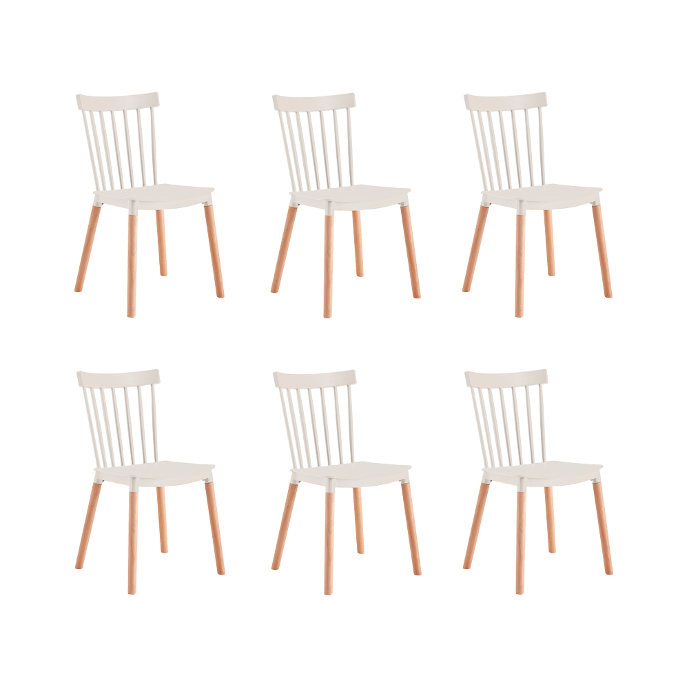 Kit de Seis Sillas Jeicob, Blanco y Café claro, cómodo asiento y patas en madera