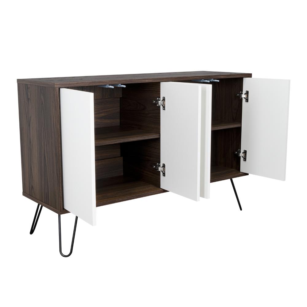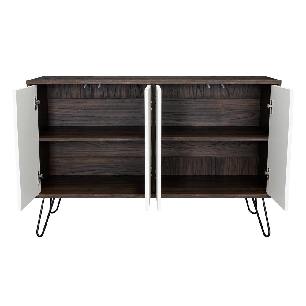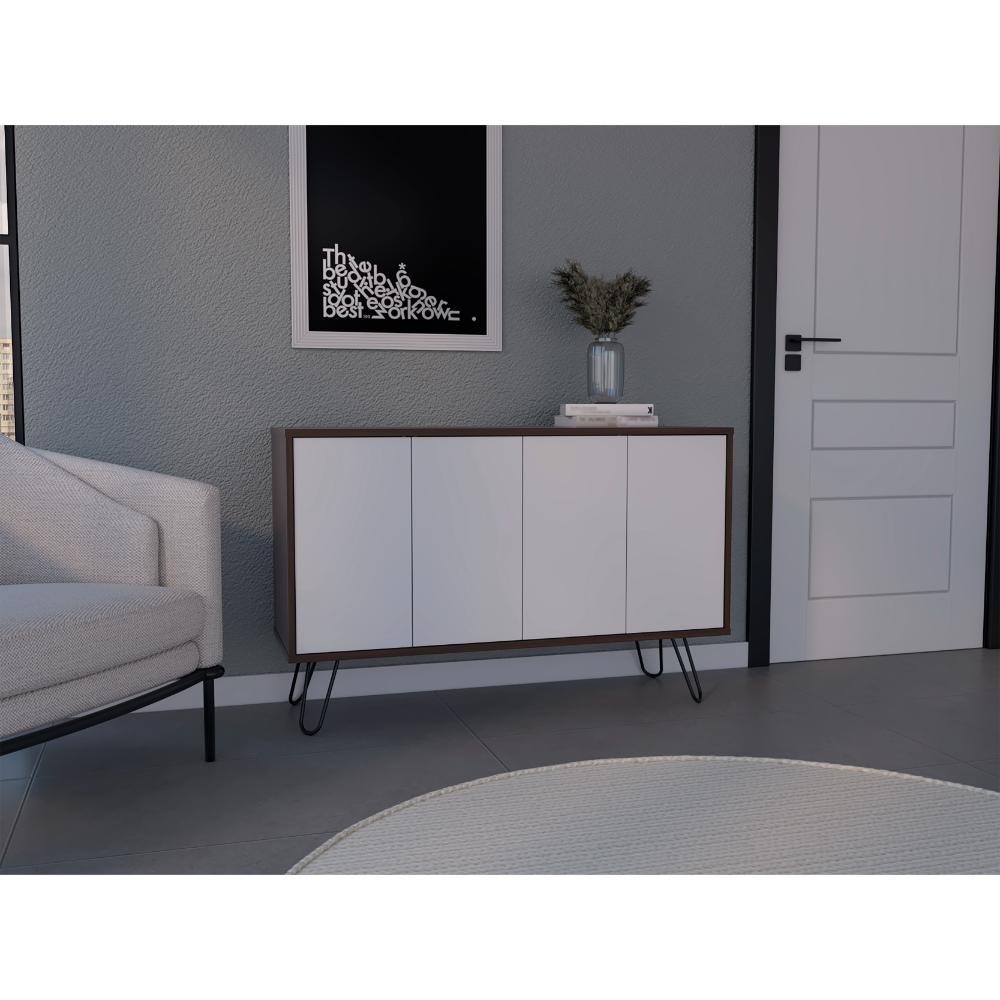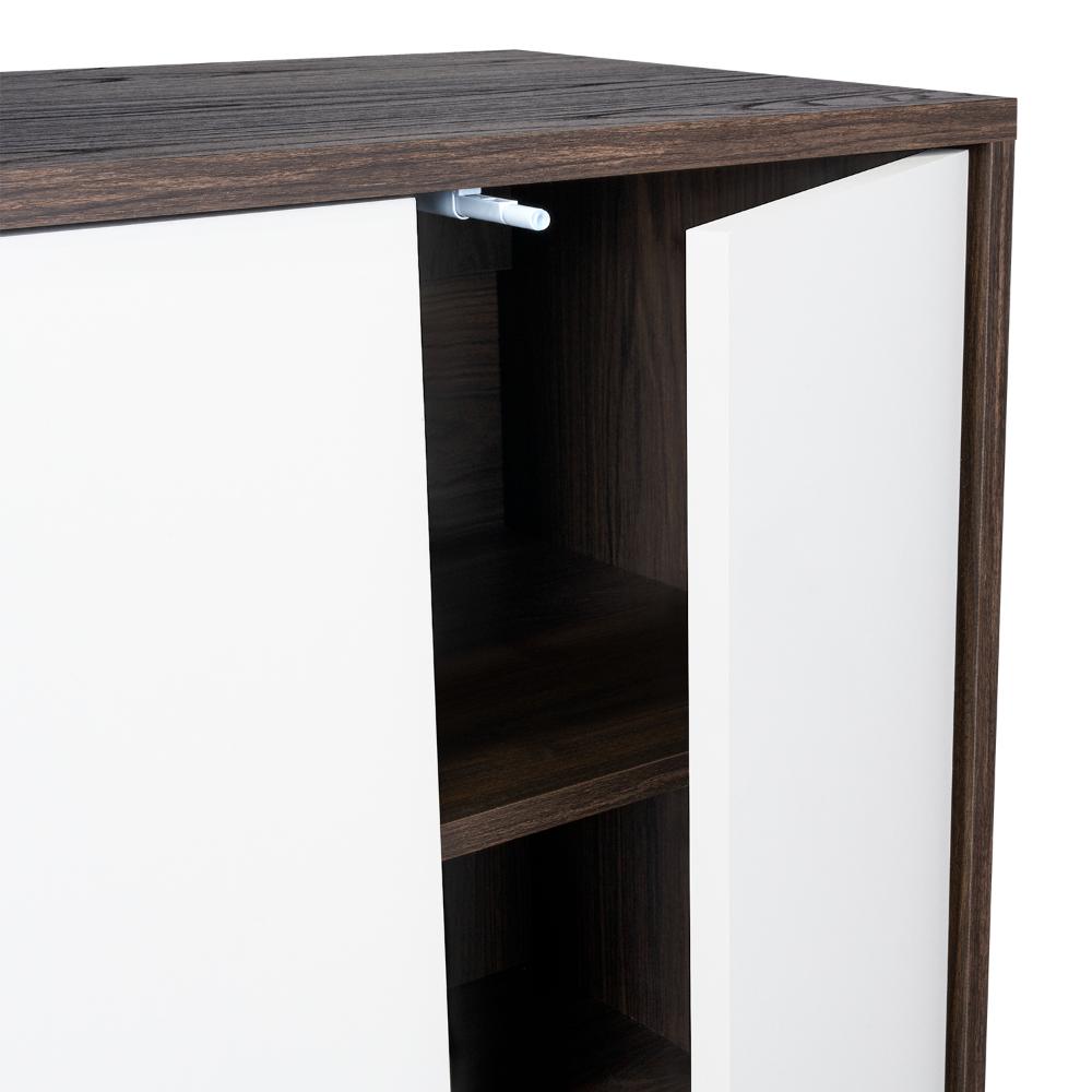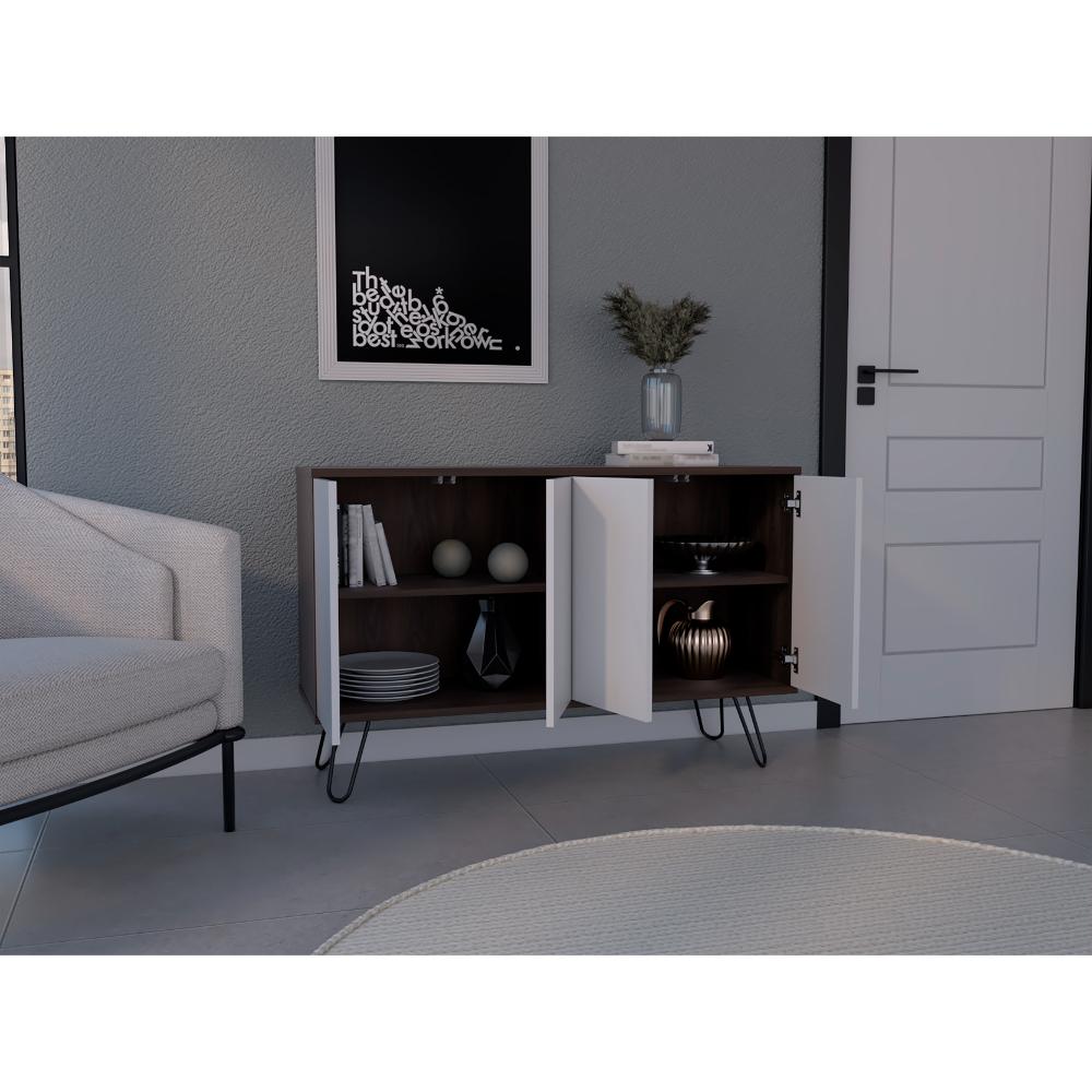 Mesa Auxiliar Lara, Caoba y Blanco, con Varios Entrepaños y Patas Metálicas