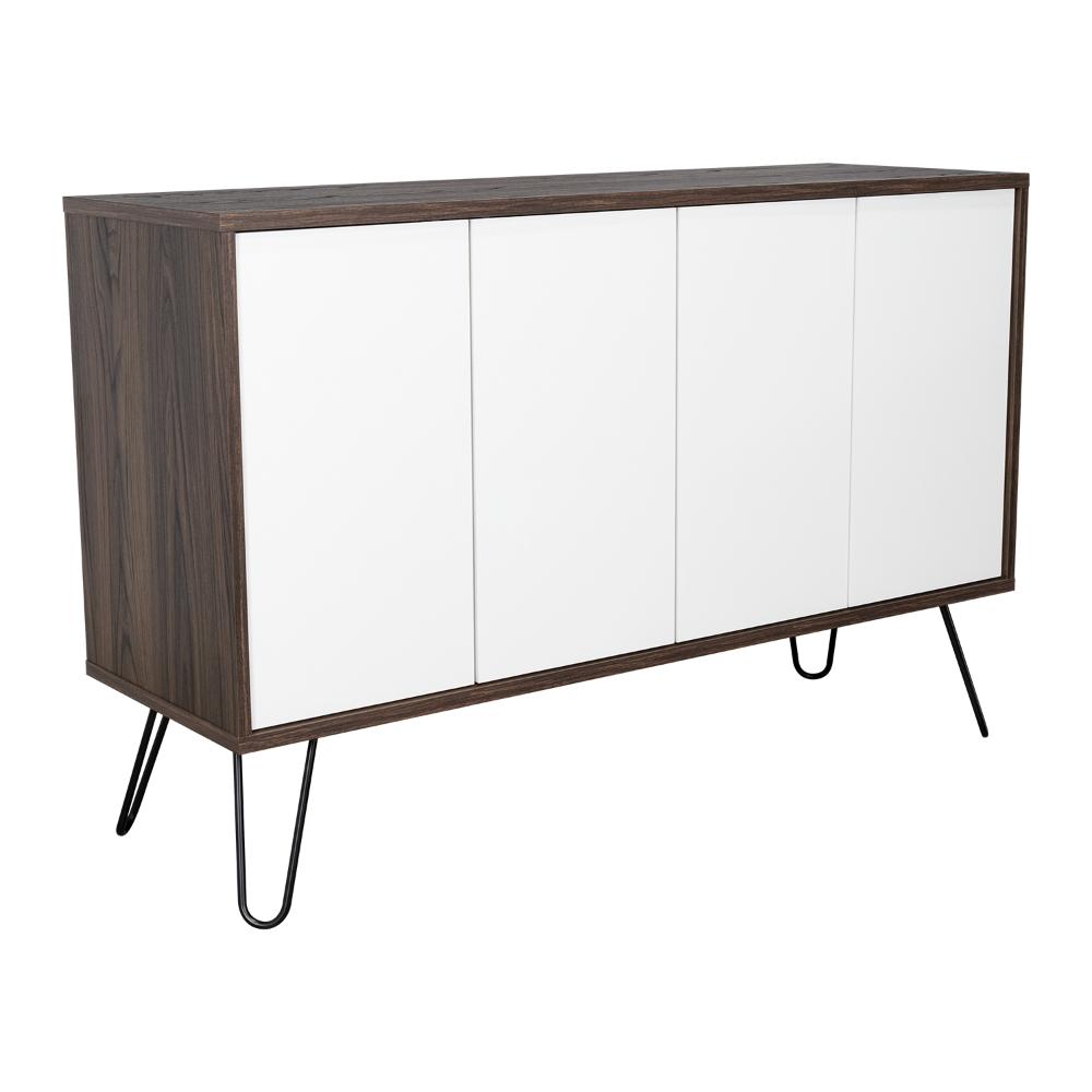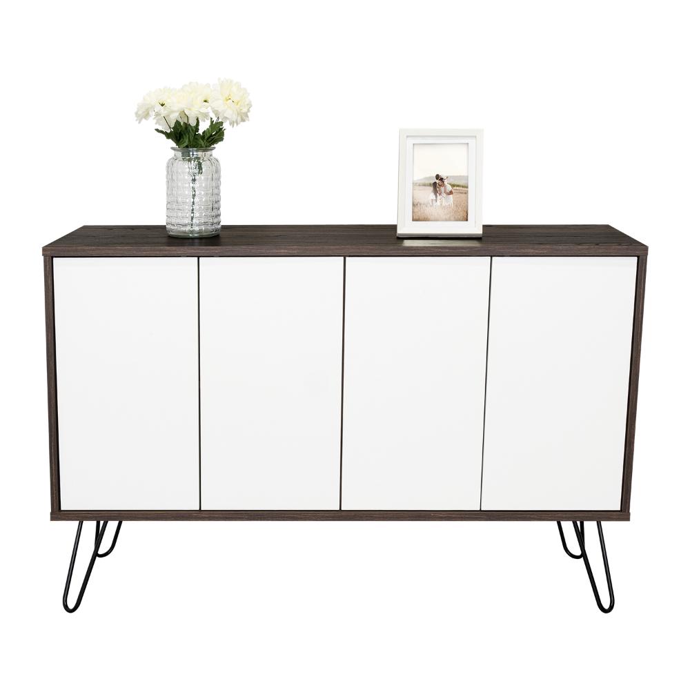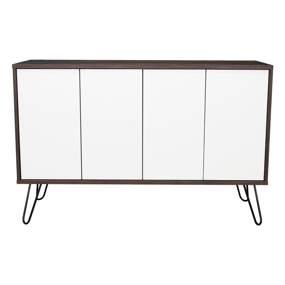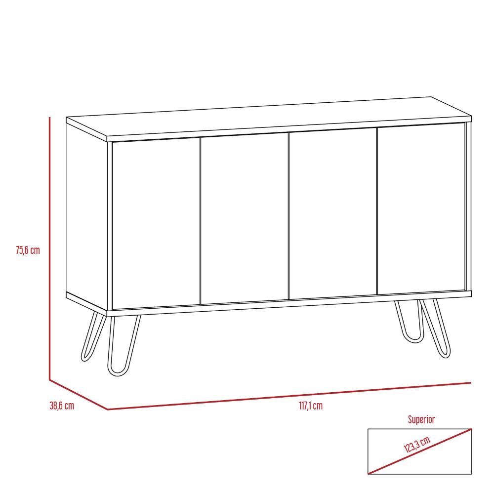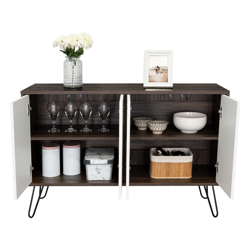 Mesa Auxiliar Lara, Caoba y Blanco, con Varios Entrepaños y Patas Metálicas