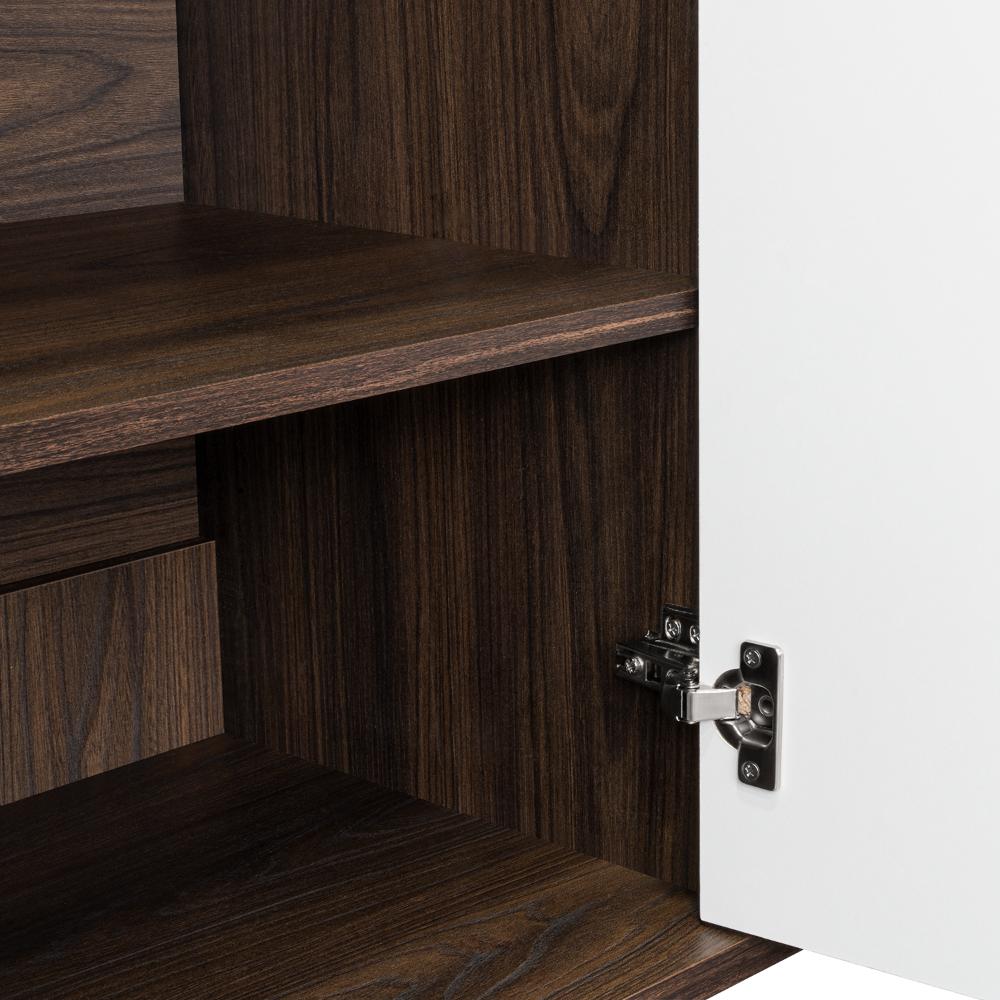 Elaborado en Madera aglomerada MDP, recubierta con láminas melamínicas de excelente calidad, en color Caoba Y Blanco.