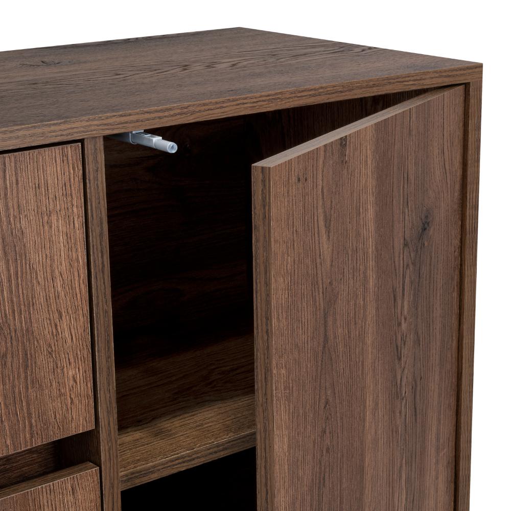 Elaborado en Madera aglomerada MDP, recubierta con láminas melamínicas de excelente calidad, en color Nogal.