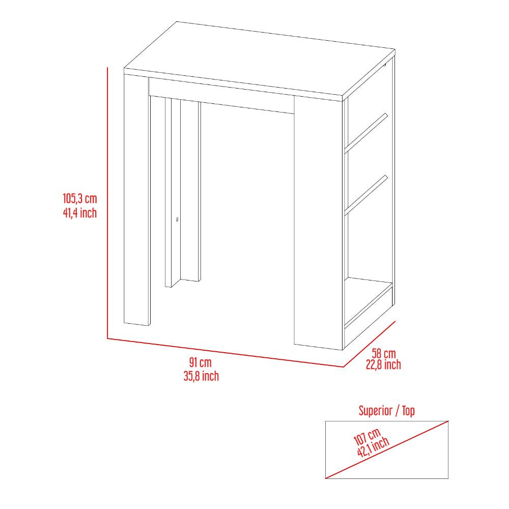 Mesa de Bar Celeste, Beige, con Tres Estantes para Botellas