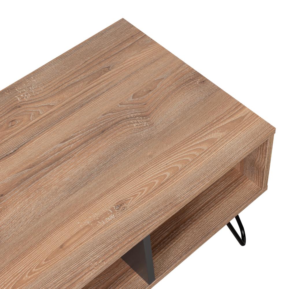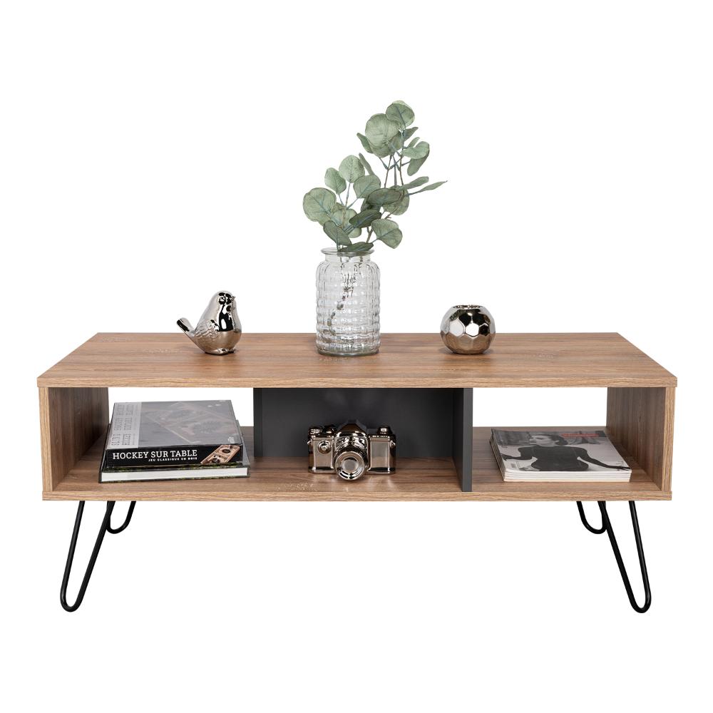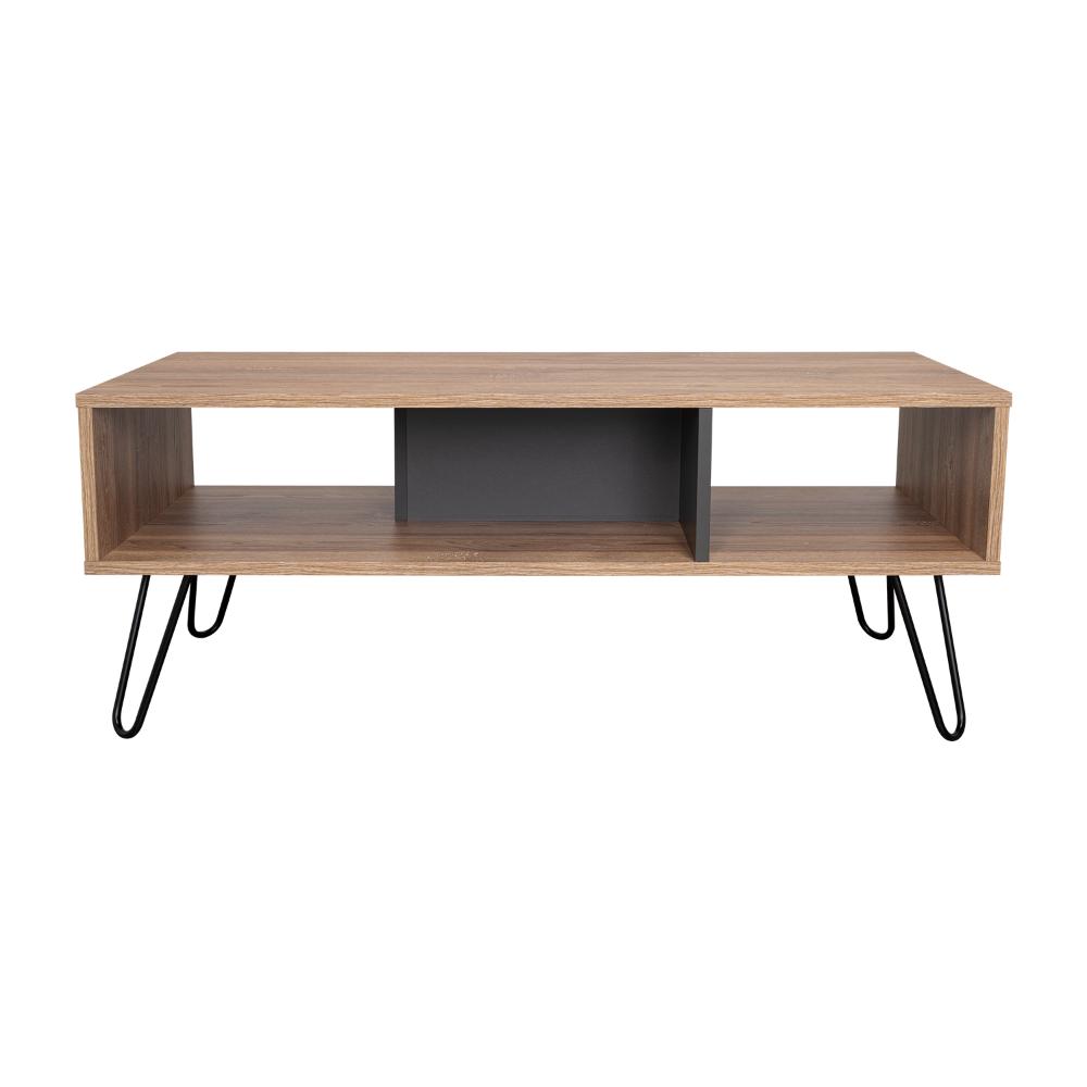 Mesa de Centro Lara, Miel y Plata Oscuro, con Amplio Espacio y Patas de Acero