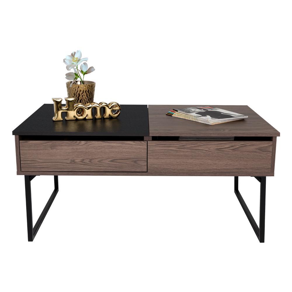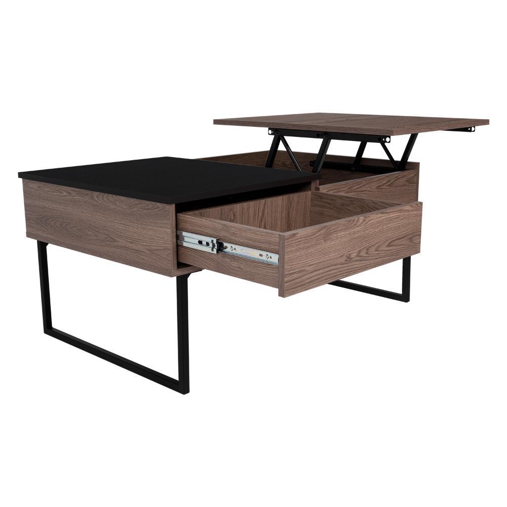 Mesa de Centro Extensible, con 1 cajón, 1 entrepaño, patas metálicas y espacio para objetos decorativos, libros, revistas y otros.