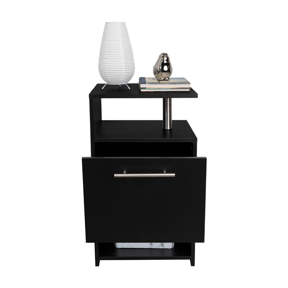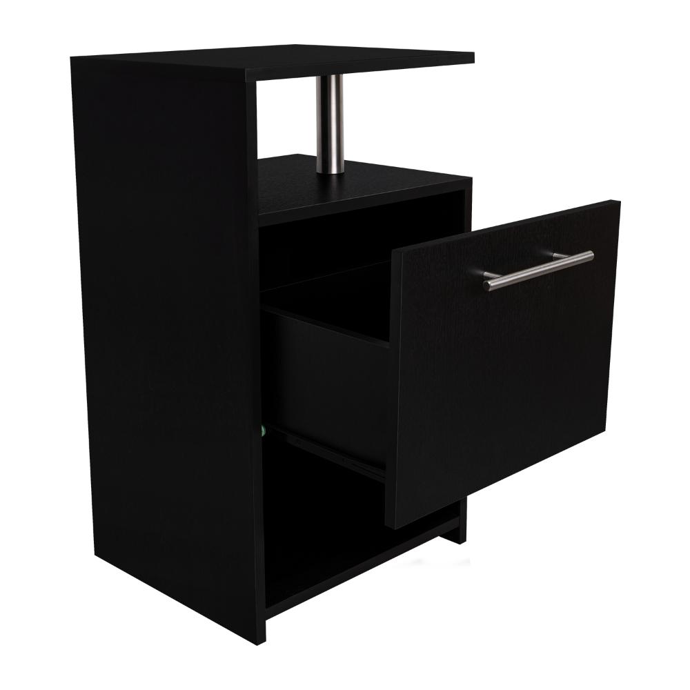 Mesa de Noche, con espacio para colocar objetos decorativos, 1 cajon multiusos, accesorios metalicos, configuración a la derecha o a la izquierda y es de facil instalación