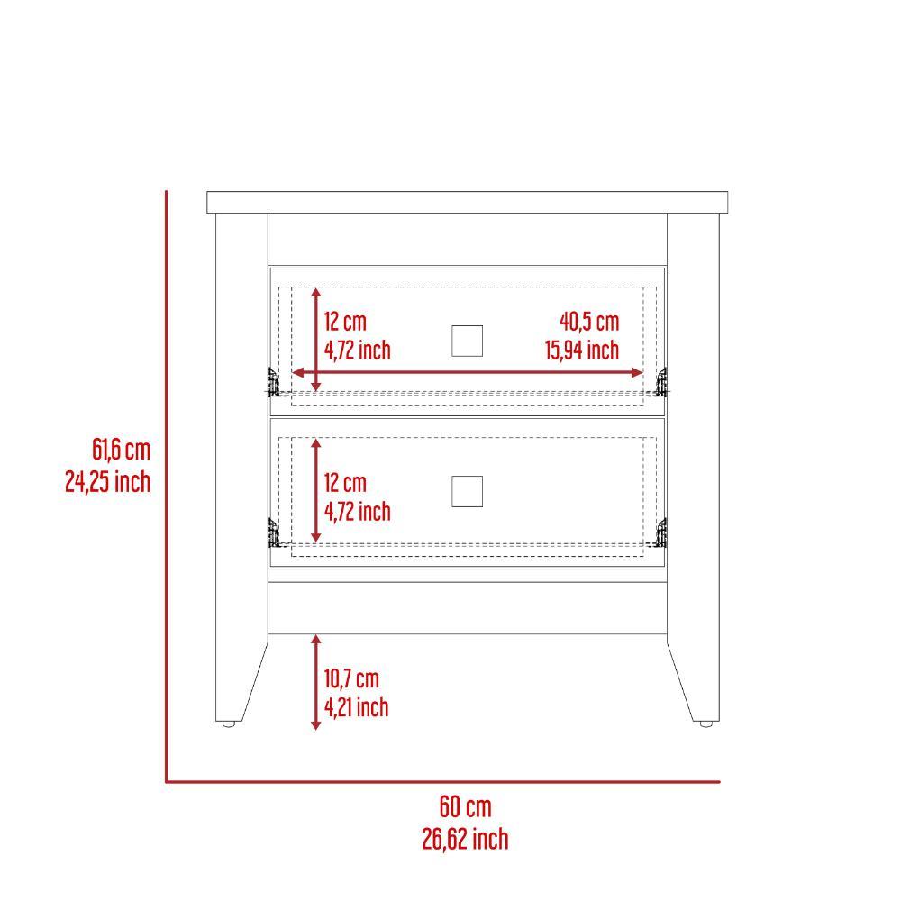 Mesa de Noche, con superficie para ubicar pertenencias, y 2 cajones organizadores.