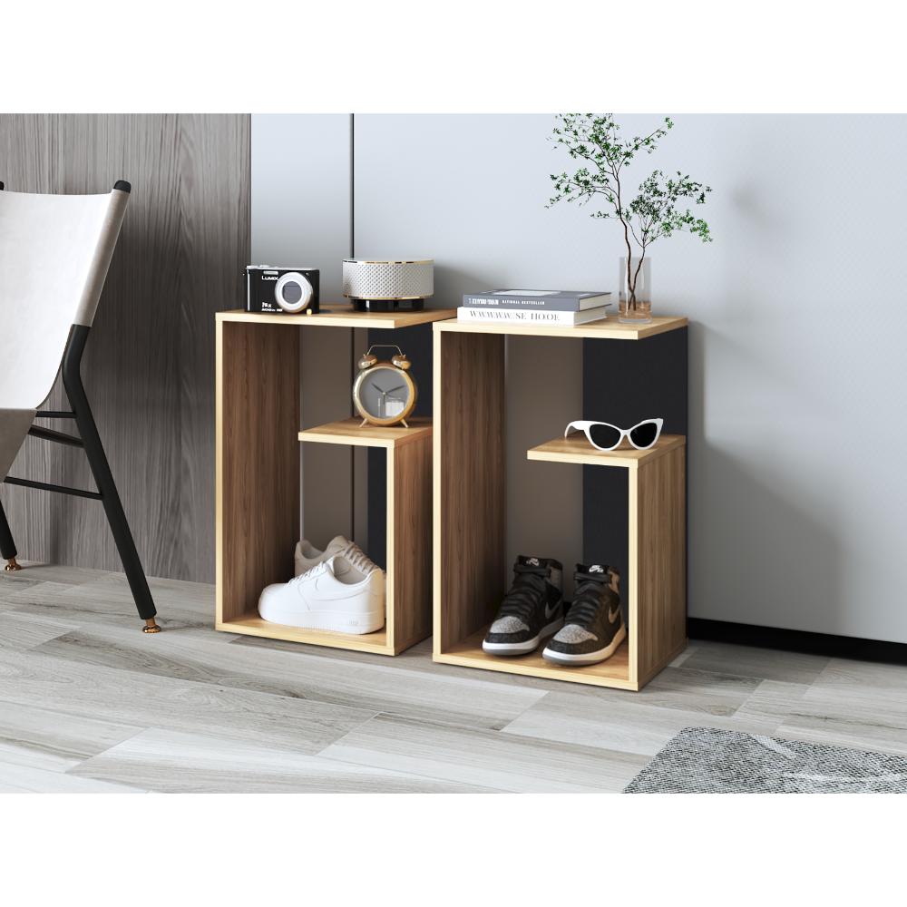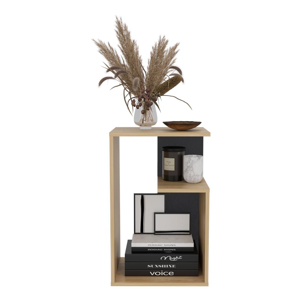 Mesa de Noche Evert, Fresno Europeo y Wengue, con diseño moderno y espacio para ubicar objetos