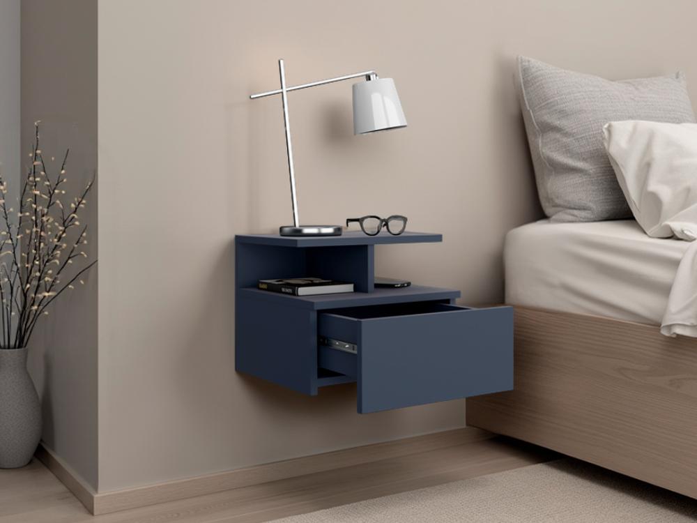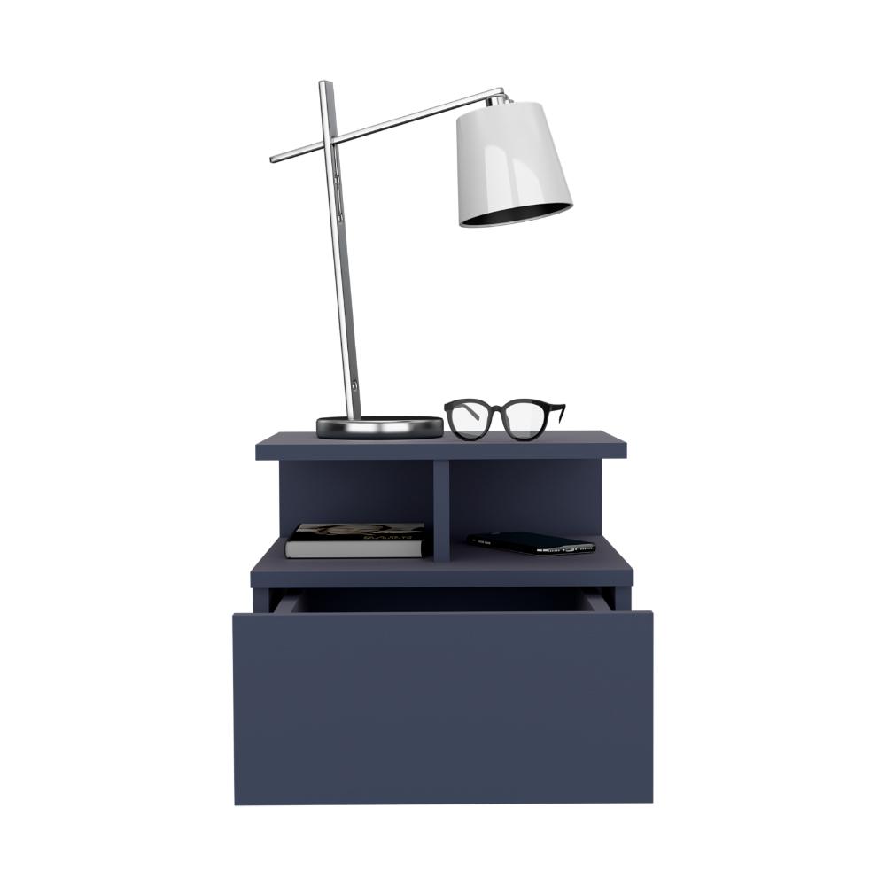 Mesa de Noche Flotante Nube, Kronos Azul, con un Cajón y División de dos Entrepaños