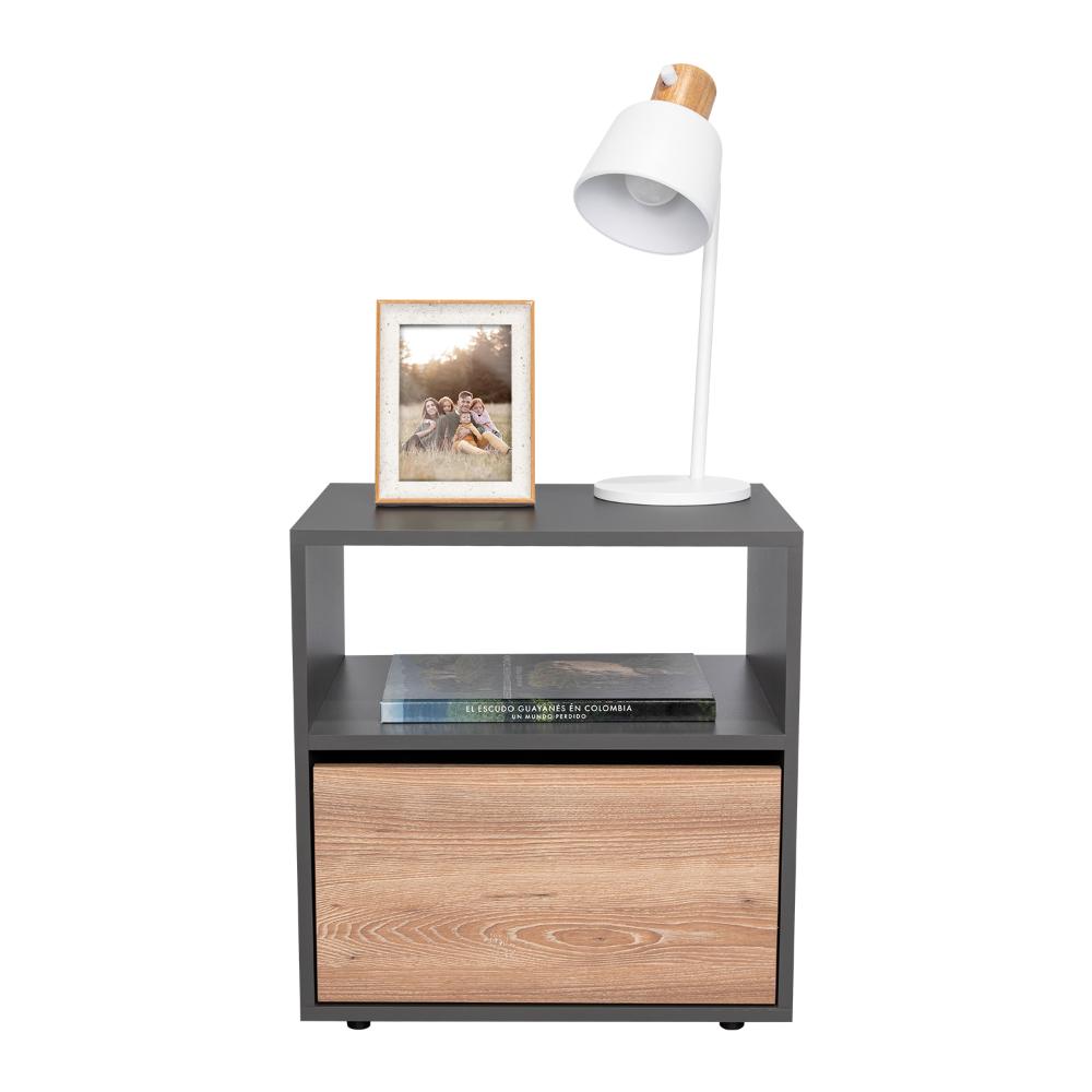 Mesa de Noche Galanto, Plata Oscuro y Lenno, con Una Puerta Batiente
