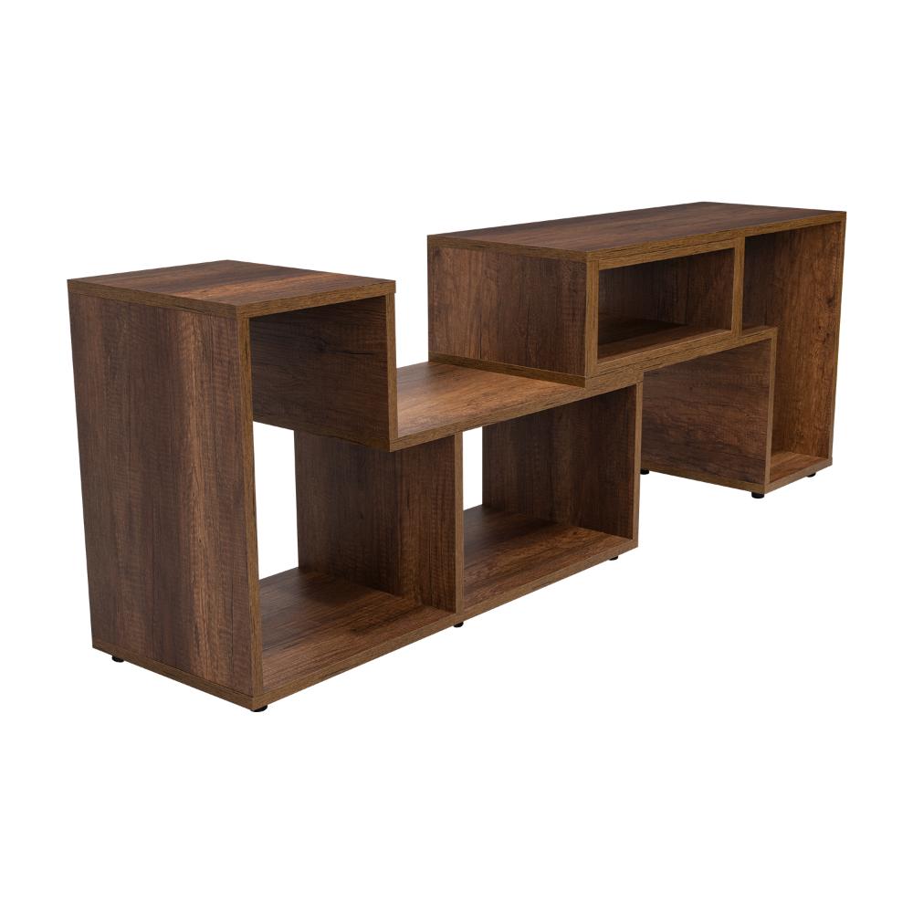 Mesa para TV Extensible, de 50", diseño moderno y funcional, tamaño variable en el ancho, compartimiento central de diseño moderno.