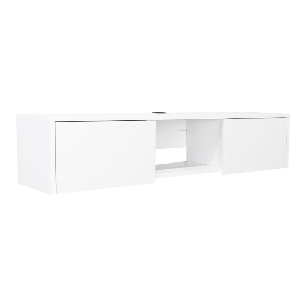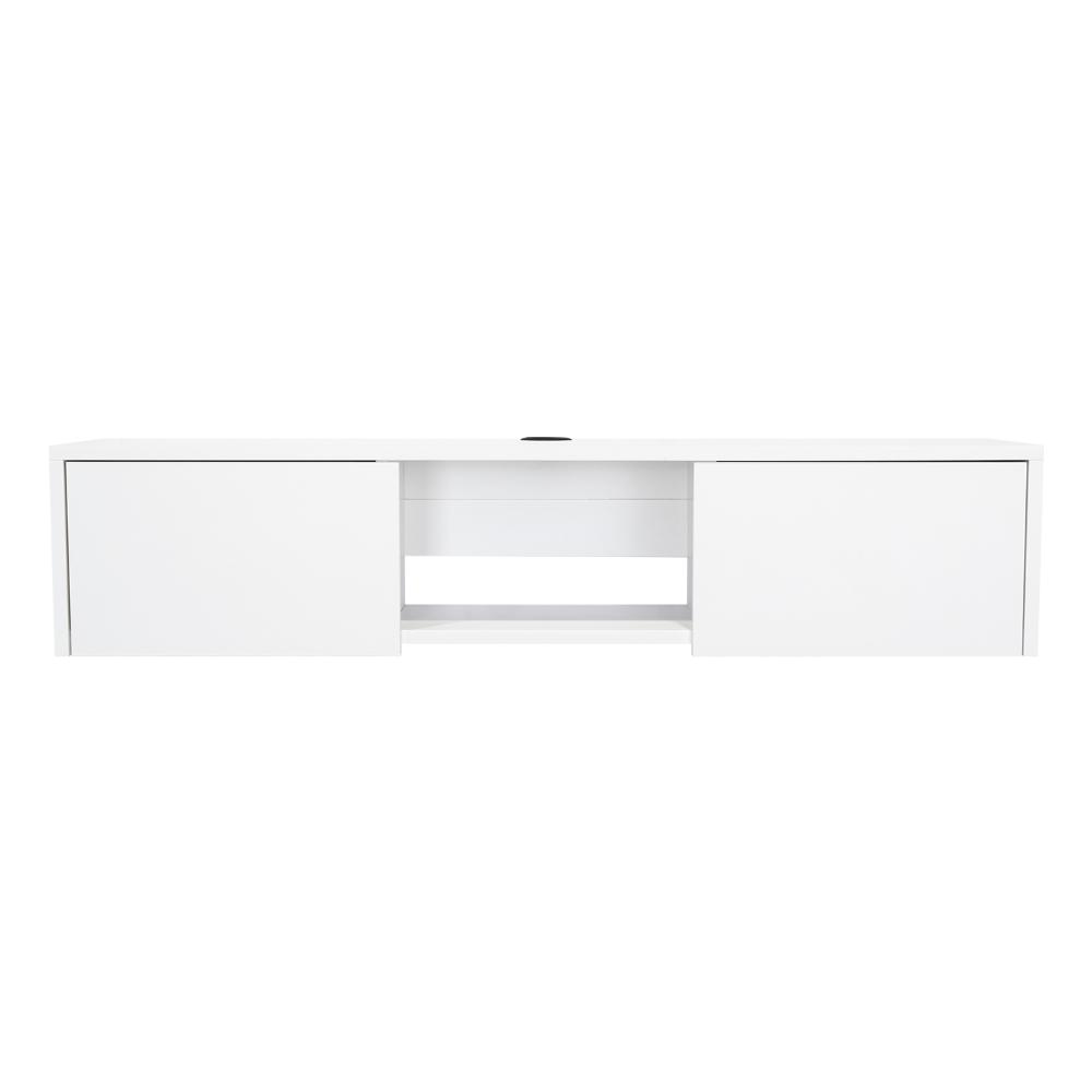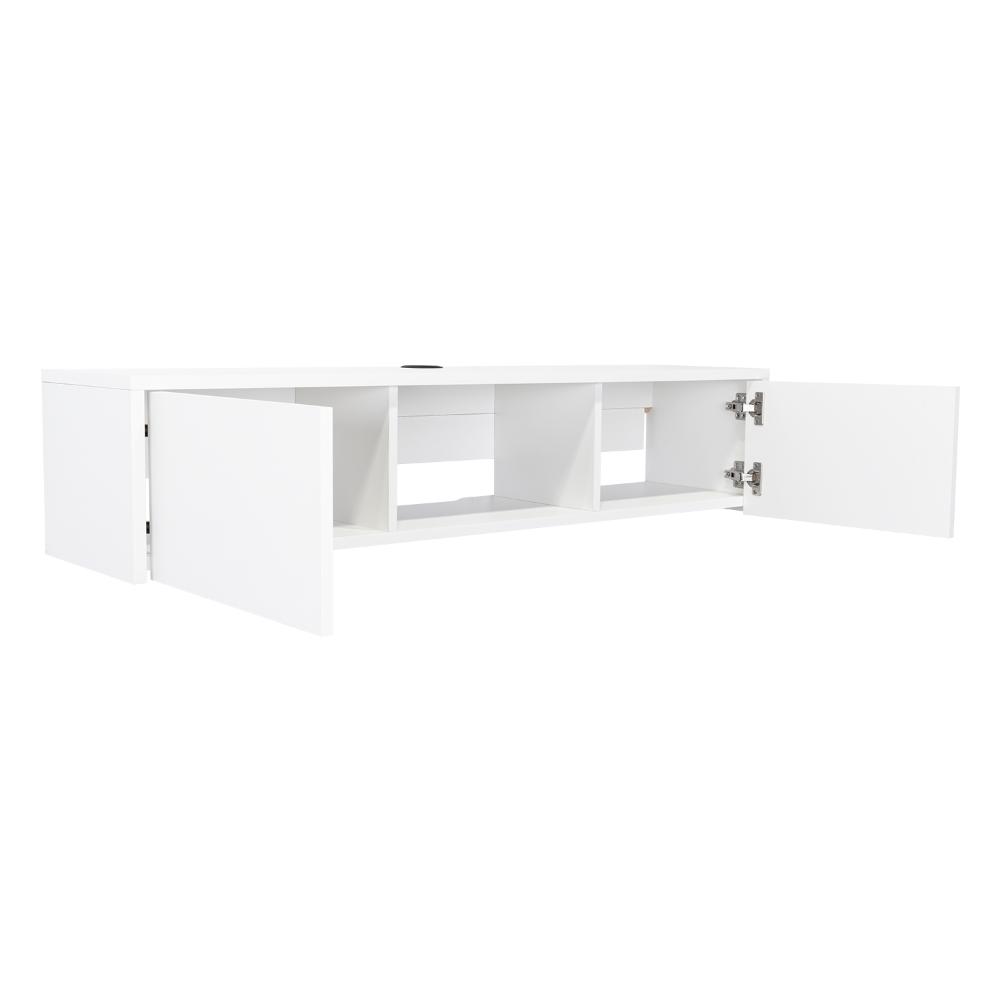 Mesa de TV Flotante, con superficie para objetos decorativos, equipos de audio y video, y dos puertas abatibles