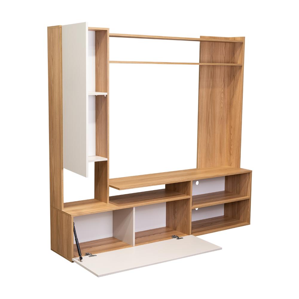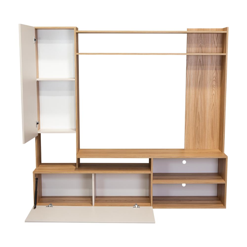 Elaborado en Madera aglomerada MDP, recubierta con láminas melamínicas de excelente calidad, en color Fresno Europeo y Capri.
