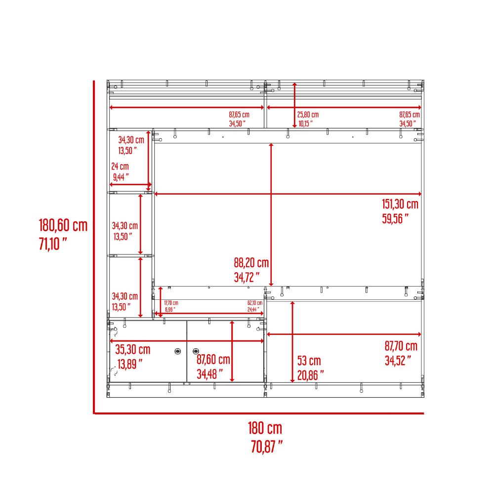 Elaborado en Madera aglomerada MDP, recubierta con láminas melamínicas de excelente calidad, en color Capri y Fresno Europeo.