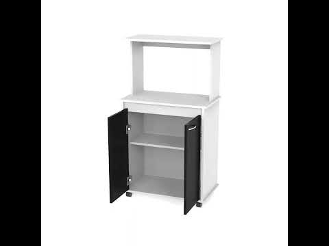 Módulo Microondas Palma, Blanco y Wengue, con Dos Puertas Abatibles y Rodachinas Para Su Fácil Desplazamiento