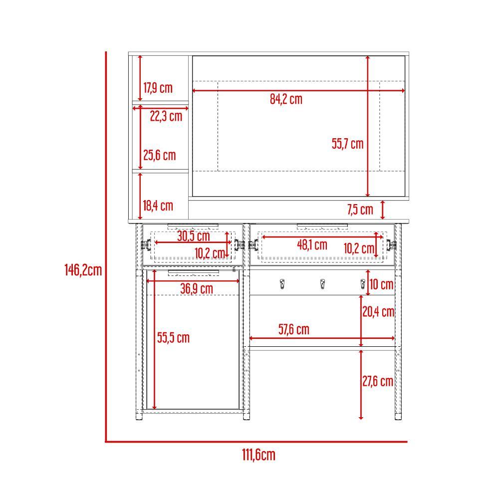Elaborado en Madera aglomerada MDP, recubierta con láminas melamínicas de excelente calidad, en color Milán.