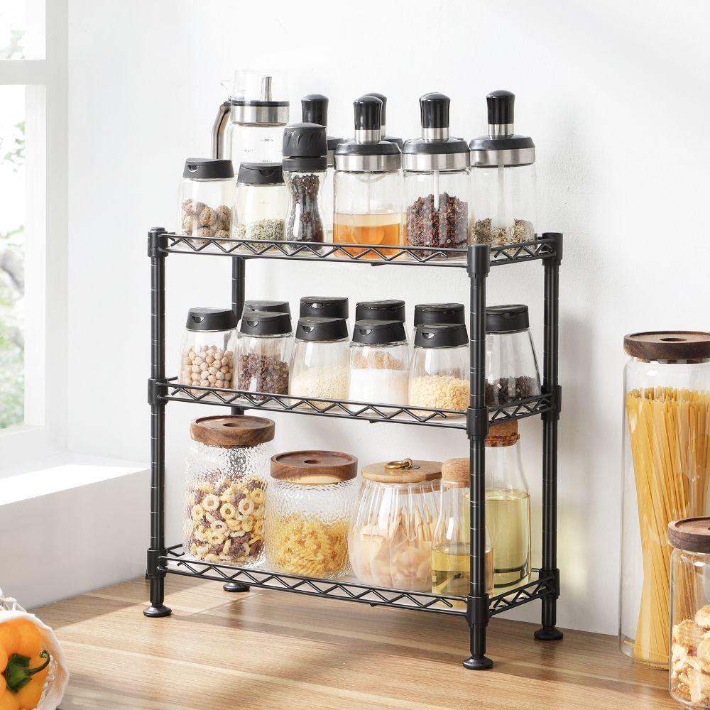 Organizador para Especias Shelves, Negro, de Tres niveles