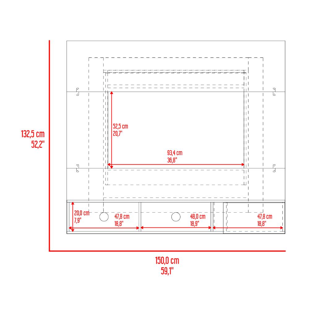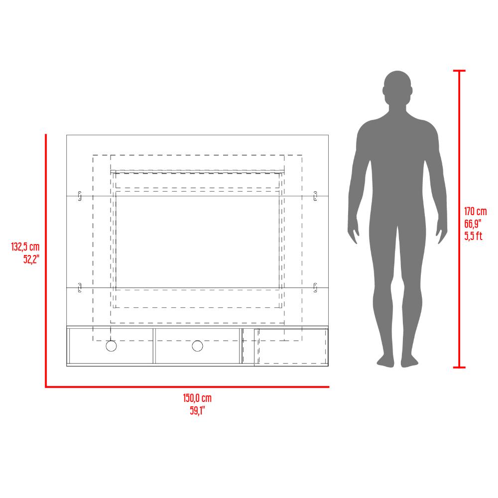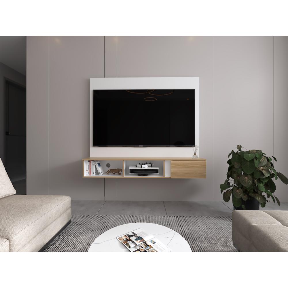 Panel para TV Light, Blanco Duqueza y Fresno Europeo, con espacio pata Televisor de 65"