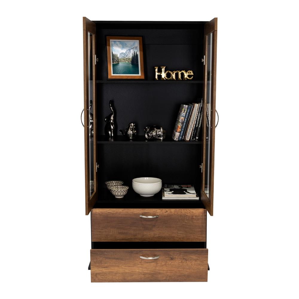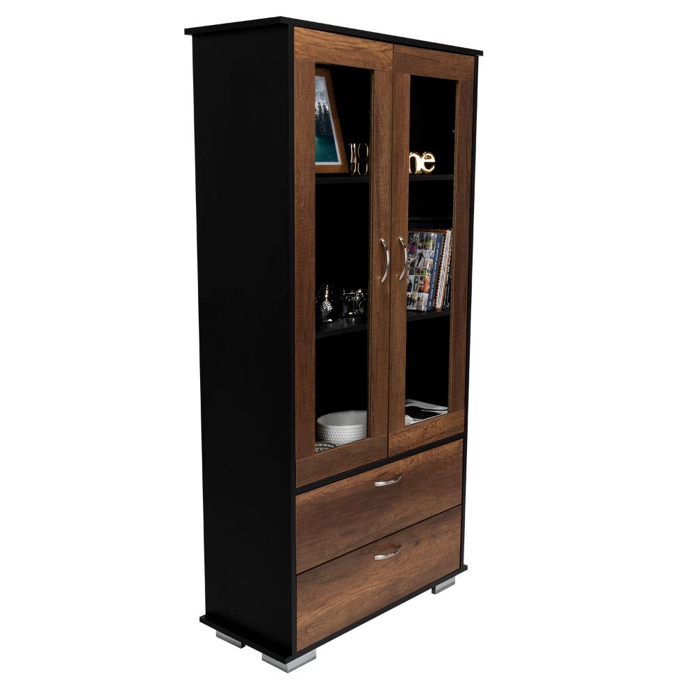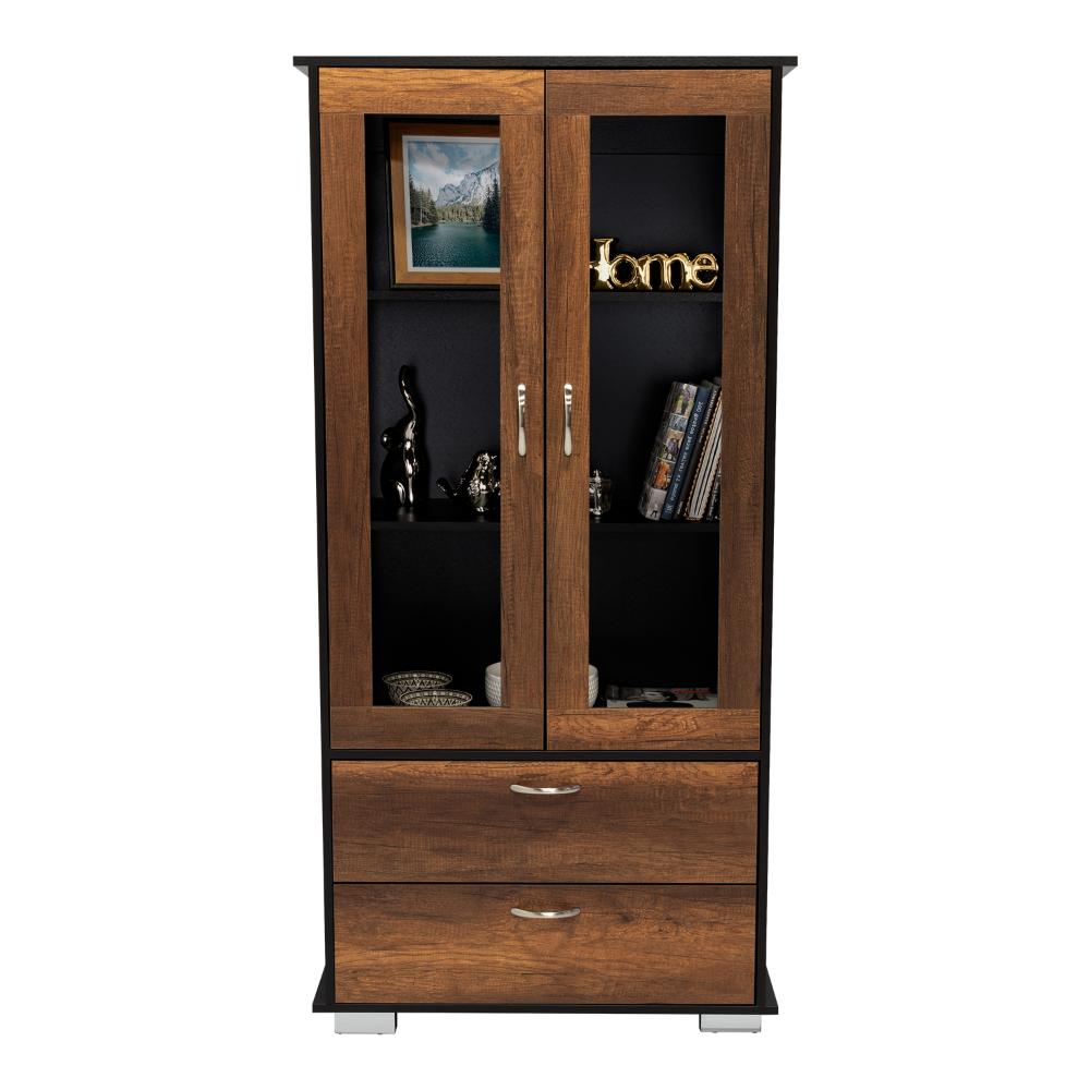 Vitrina Clasic, Wengue y Cobre, con Dos Cajones